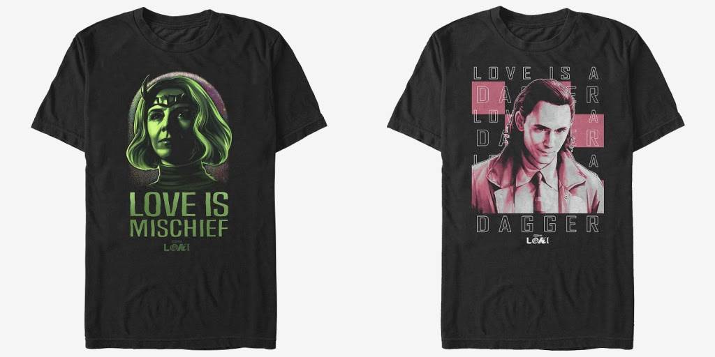 Sylvie and Loki debate the true meaning of love, and their answers couldn’t be more strange! Whether you’re a fan of the mischief or dagger analogy, Hot Topic has a shirt for you. Available in men's and women’s styles.