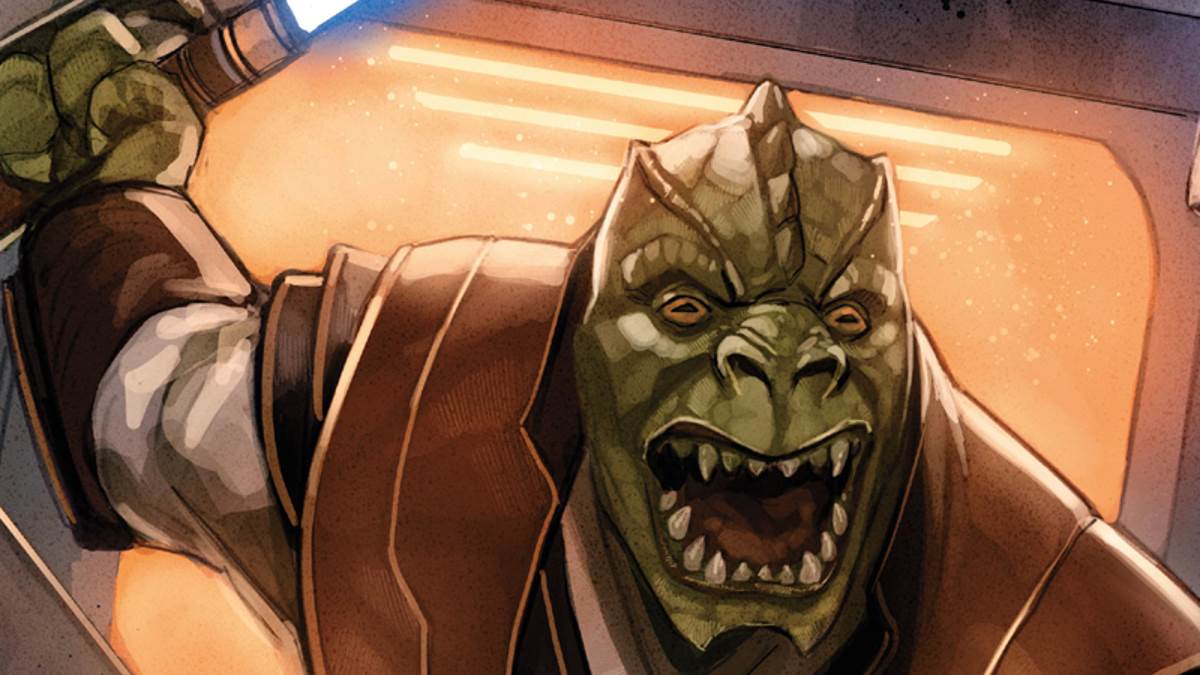 I loved the idea of a Trandoshan going against their nature, or the nature that’s perceived by the galaxy as a whole. So I started to try and work out who he was. It was interesting because his relationship with Keeve [Trennis] came really late in the day. He was always going to play a major part in the comic, and his arc-- which we haven’t really explained yet, so I can’t go into too much detail about it-- what he’s going through and why he’s struggling so much in the Force, that was part of that original character sketch that I wrote looking at that piece of art from Phil. And then at the last minute, when I was just about to submit issue #1, it still really wasn’t working. I suddenly realized he needed to be Keeve’s master. That wasn’t their relationship at first. He was like a trainer; he was someone who was overseeing a lot of the Padawans on Starlight Beacon. It just wasn’t having the emotional punch that I needed it to have.