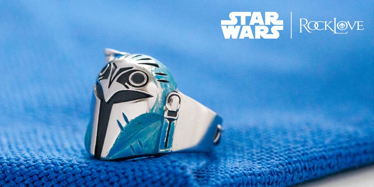 - Sculpted in sterling silver, and plated in polished gunmetal rhodium, The Mandalorian Helmet Ring is an homage to Din Djarin, the legendary bounty hunter and lead character of the hit series The Mandalorian.
