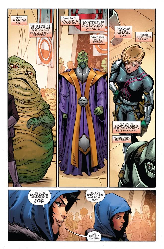 And in Star Wars: Doctor Aphra, volume 2, issue #12-- also out today from Marvel Comics-- we see that same situation play out, ostensibly this time from Chelli and Sana’s perspective, but in execution these scenes end up being a little too similar to what’s depicted in the other title.