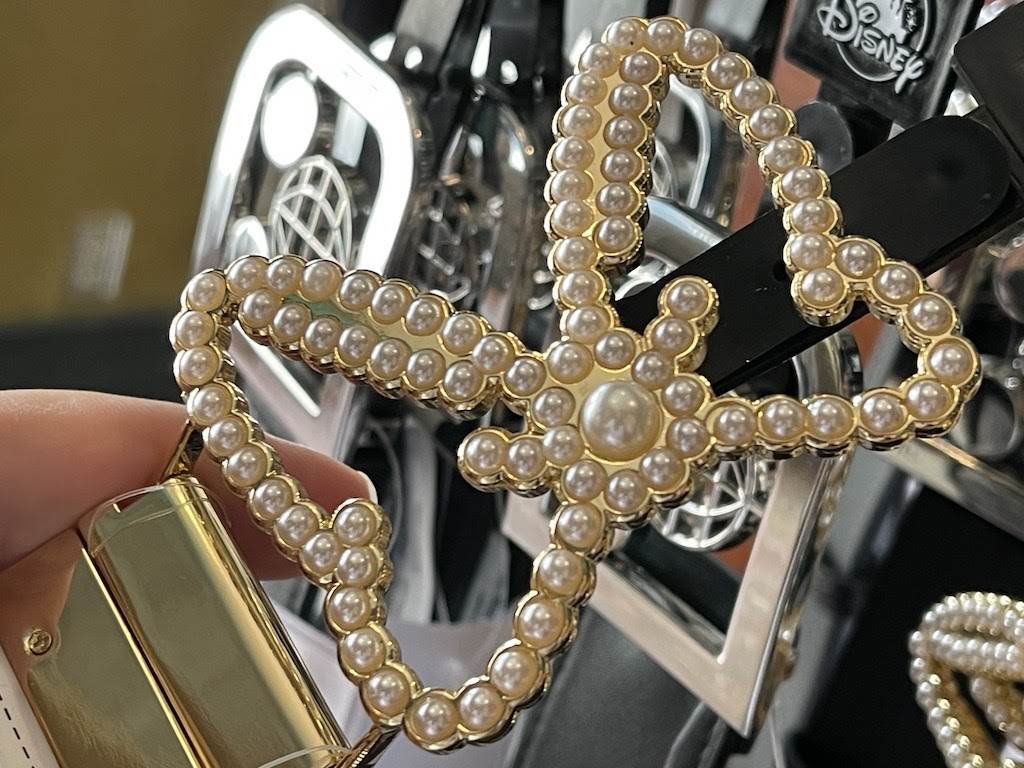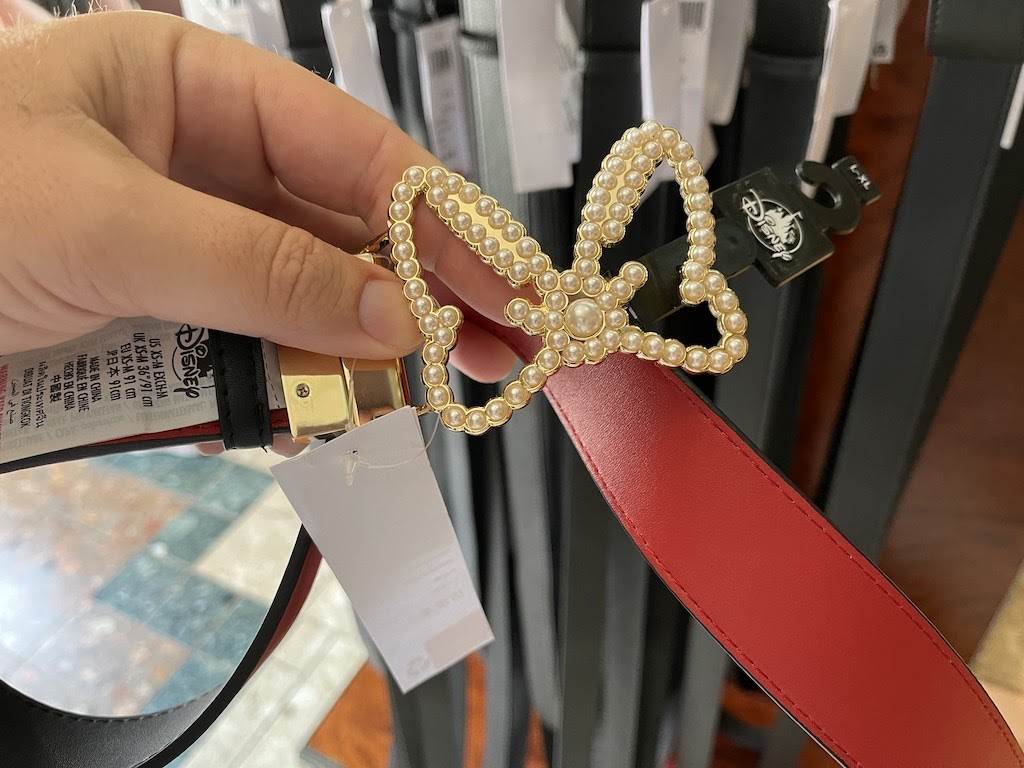 Is there anyone more glamorous than Minnie Mouse? Channel her fashion instincts with this adorable belt featuring a pearly bow as the buckle!