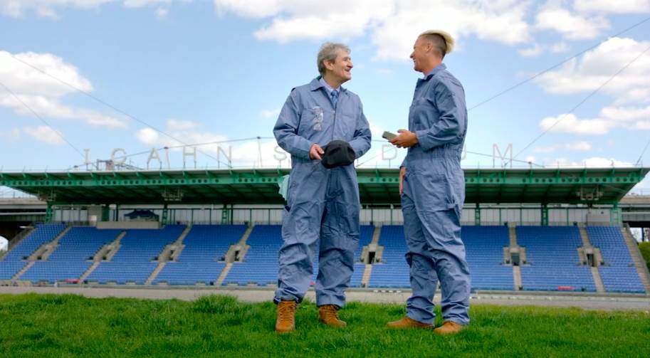 The two then come together for a little target practice game. They line up the logos of all the teams they’ve both played for in a net and take a few shots at them. A few shots in, they show us why they’ve retired from the game, but eventually it comes back to them and they start hitting the target.