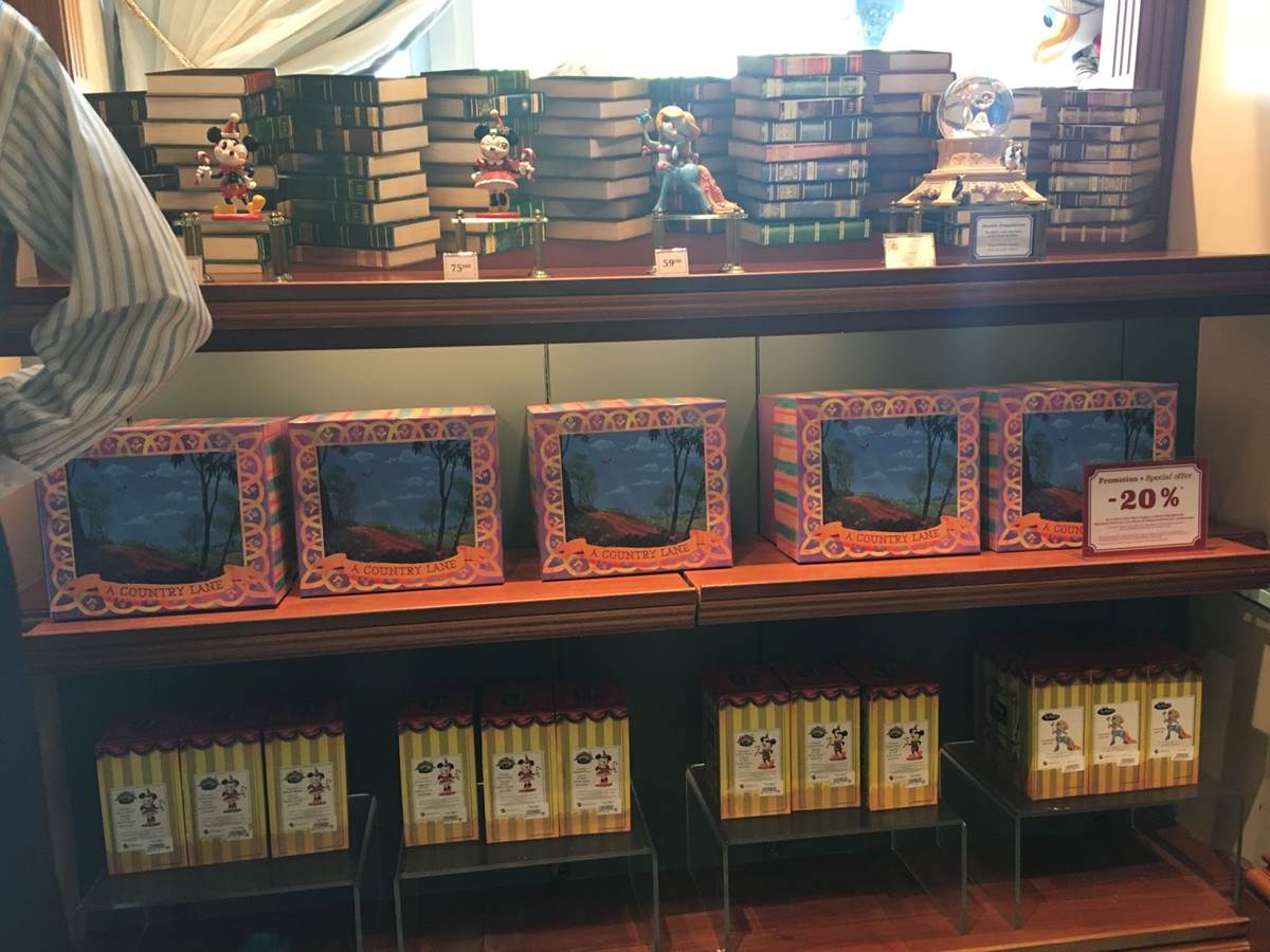 Annual Pass discounts are applicable to most items as they would in usual shopping locations. Aside from the small collection of exclusive items, the store sells merchandise that can be found in most locations such as Spirit Jerseys, pins, lanyards, mugs, Loungefly backpacks, snow globes, Traditions sculptures, Phantom Manor (and Haunted Mansion merchandise) and much more. And yes - they do still sell books!