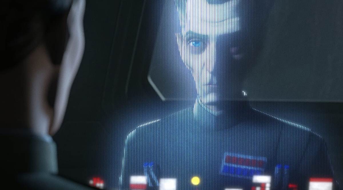 “Finale Part I” begins with the Crosshair’s shuttle traveling through hyperspace with Hunter (voiced by Dee Bradley Baker, as are all the members of Clone Force 99) being held prisoner in the passenger compartment. Crosshair enters and tells him he’ll find out where they’re going “soon enough.” Crosshair takes Hunter’s comlink and says the Bad Batch will come to try and rescue Hunter even if they think it’s a trap. On Ord Mantell, Echo and Omega (Michelle Ang) are repairing the Havoc Marauder. Wrecker enters and says he left Gregor with Cid when Tech notices that Hunter’s communication device has just been activated. Arriving on Kamino, Hunter is confronted by Vice Admiral Rampart (Noshir Dalal), who says his actions on Ryloth grabbed his attention. Rampart leaves Hunter with Crosshair and tells him to stay on schedule, though one of the other troopers says she questions Crosshair’s motives.