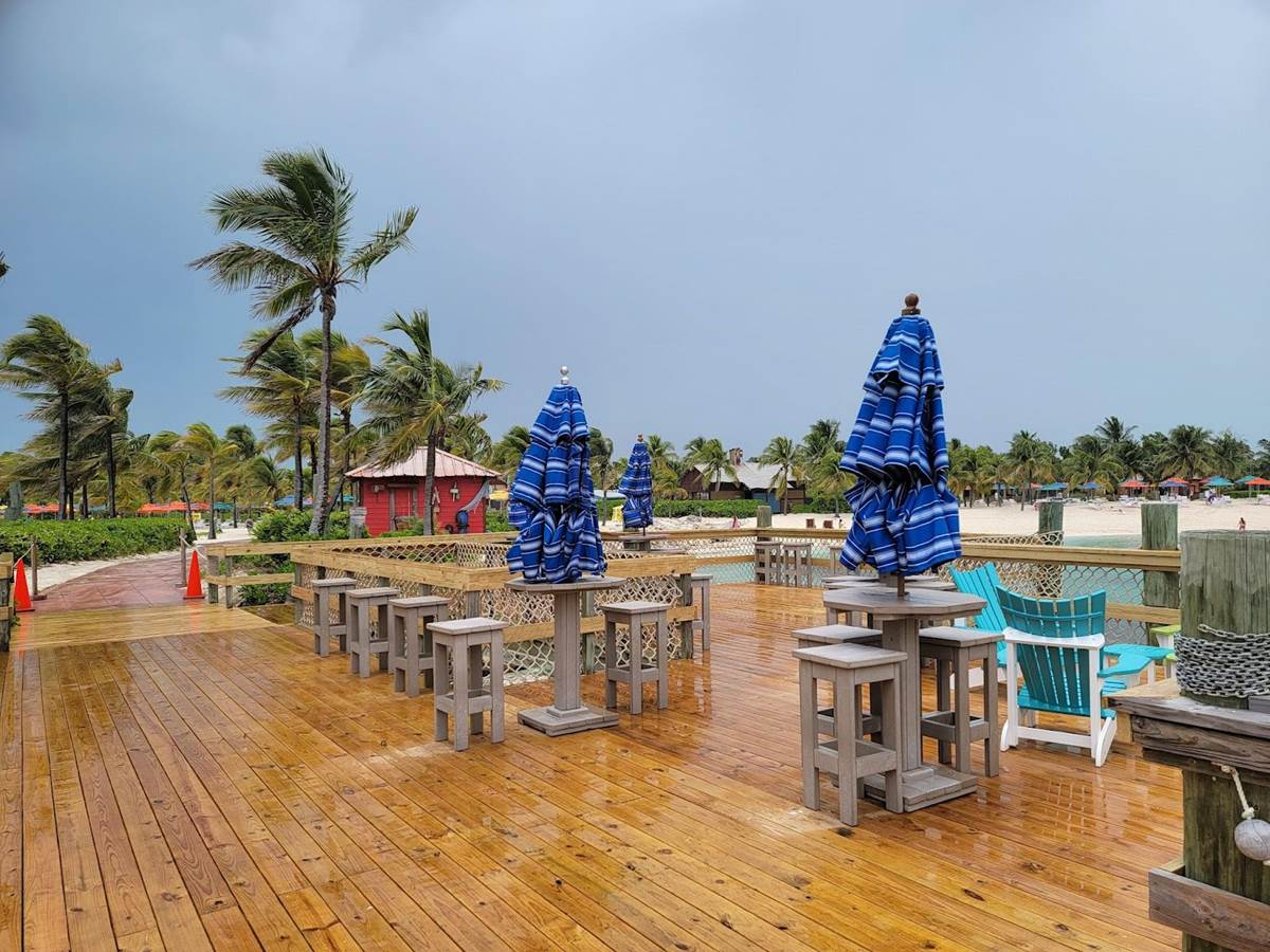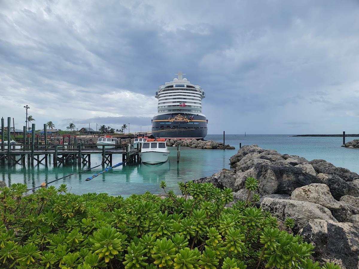 During our August 9th Disney Dream Cruise (first post-pandemic closure cruise), we spent two days at Castaway Cay and they were quite different from each other. The first was sun-filled with balmy breezes while the second was wave after wave of tropical showers until about 2:30 p.m. when the sun shone until “all aboard” at 4:45 p.m. And while we had back-to-back days at Castaway Cay we didn’t stay docked at the island overnight.