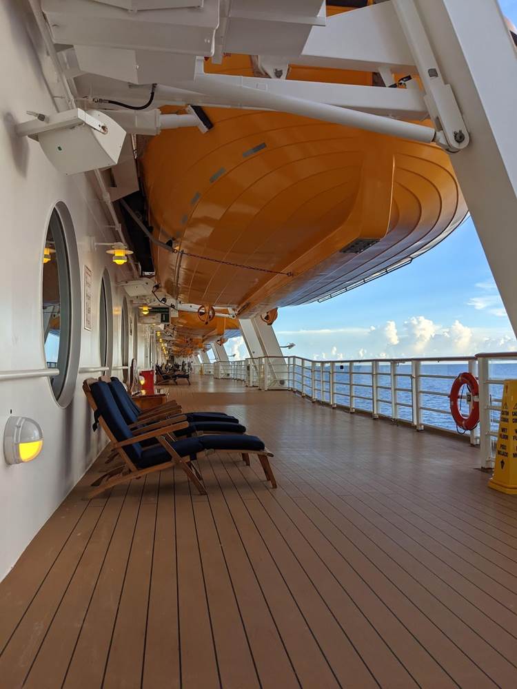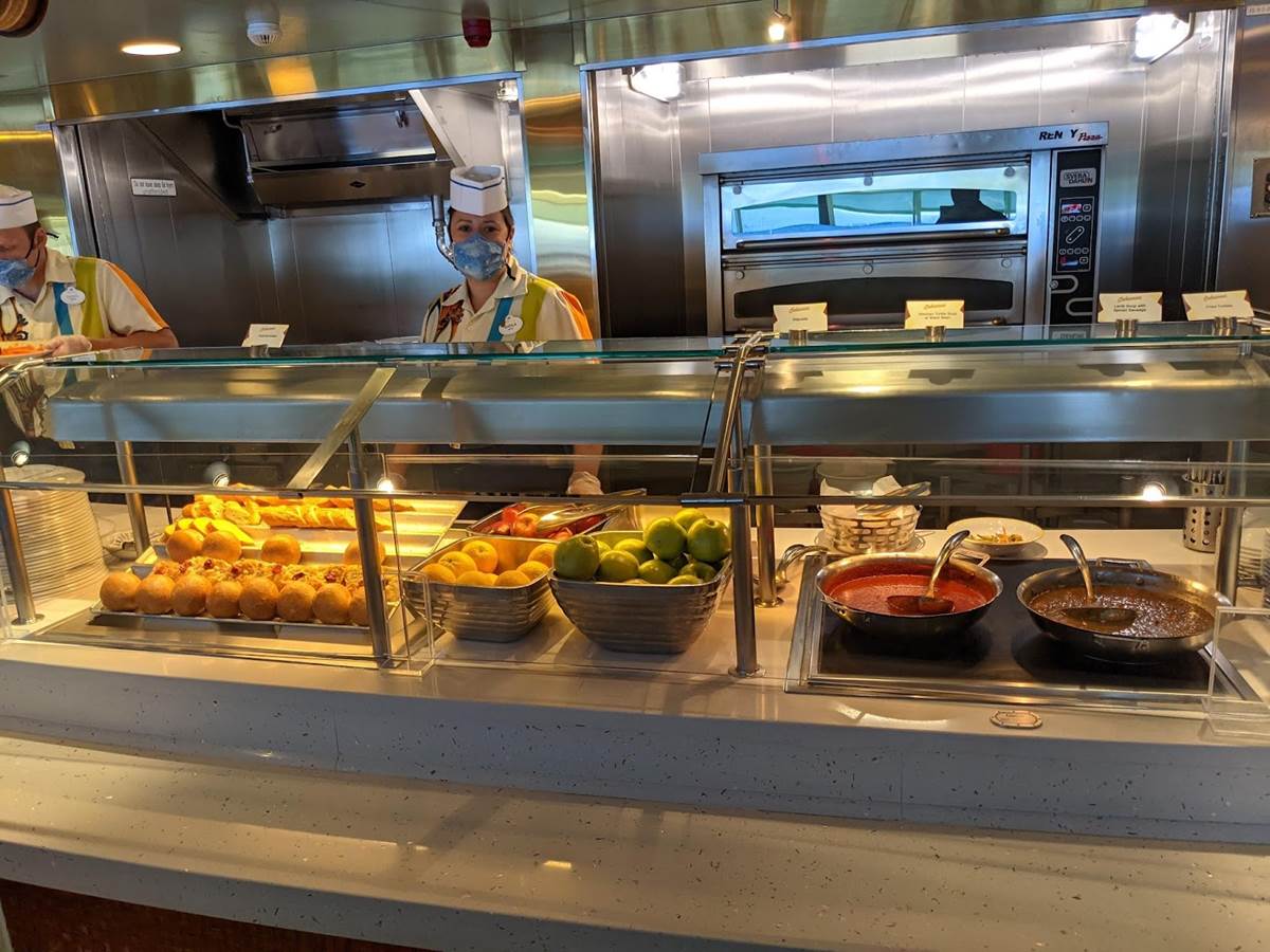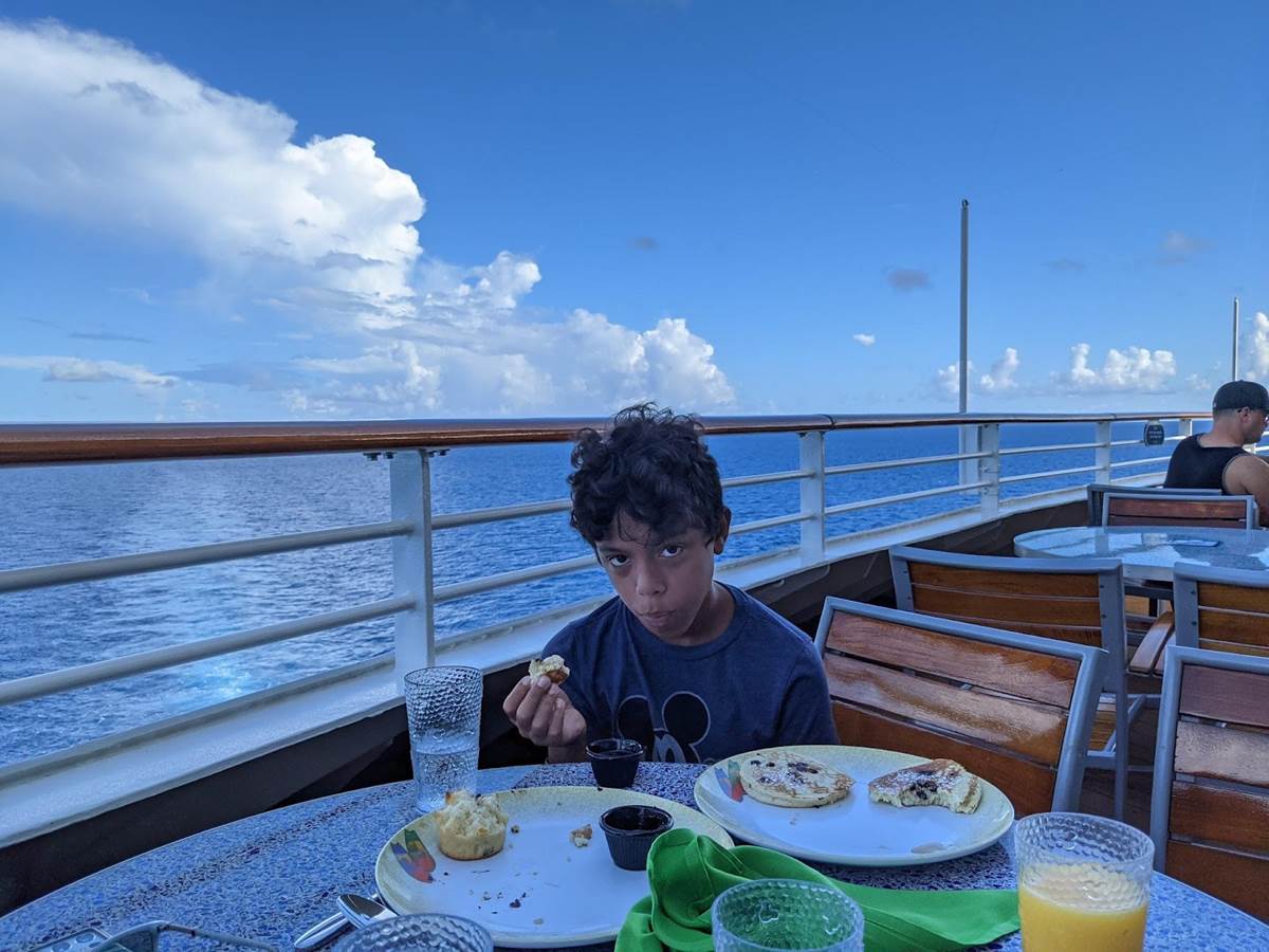 Picked up Gideon from Oceaneer’s for a lunch break. Doobie and I grabbed tasty items from Cabanas. While everything was tasty it did seem that the variety of items was reduced due to the need to provide adequate stations for social distancing. So I’d say there weren’t as many “adventurous” items as I recall from previous cruises but there was plenty to choose from. In addition the quick service venues with burgers, tenders, fries and pizza were open on the top deck as well.