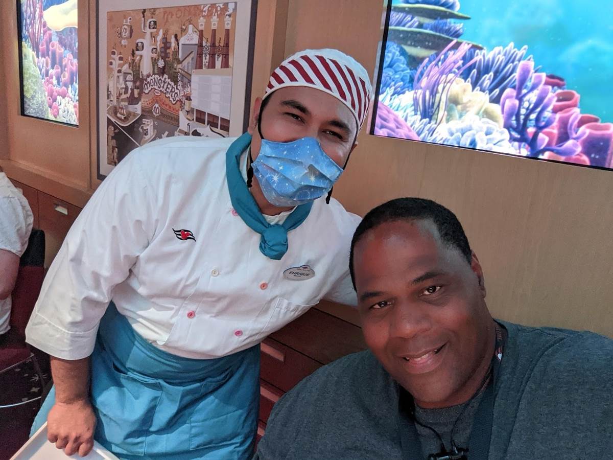When it was time for dessert Enrique from Vanellope’s arrived with a tasty sundae. Apparently he and Doobie bonded when he spotted Doobie’s Hamilton facemask. This led to quite a few performances from the popular musical in the top deck ice cream parlor and in the restaurant.