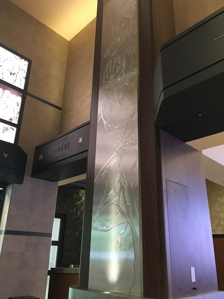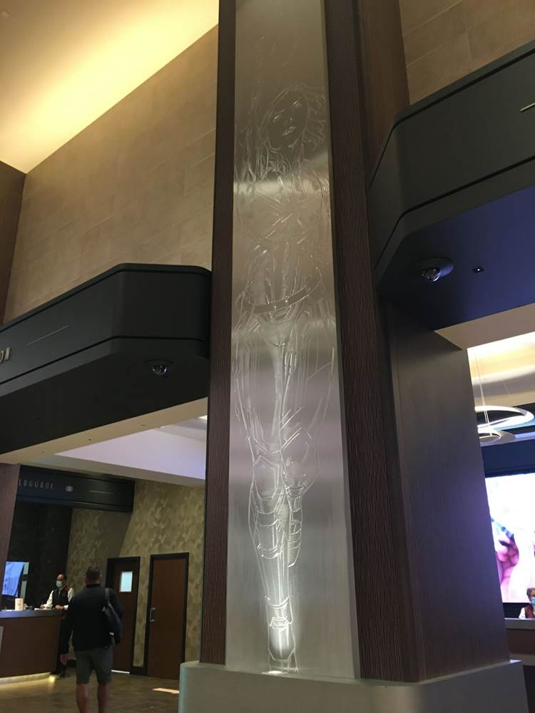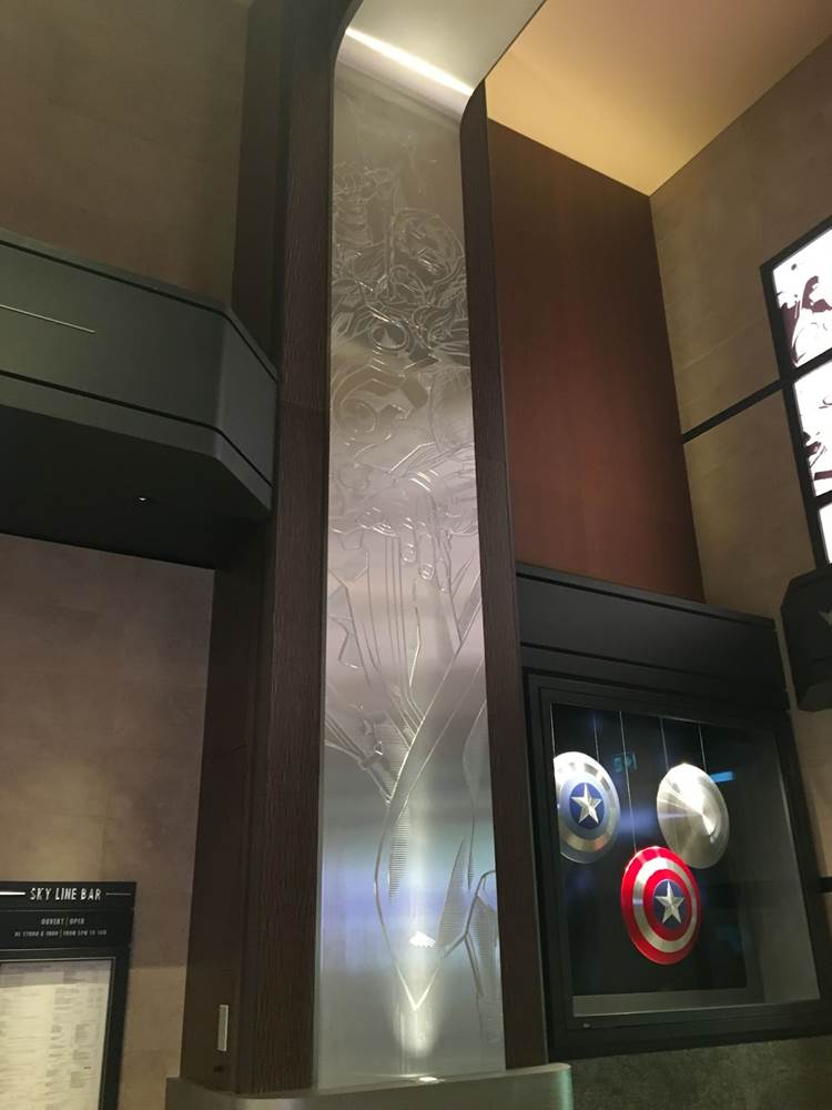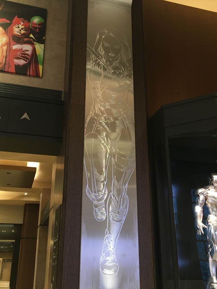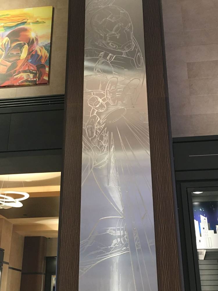 Art Guardian Pablo was our guide for an hour-long tour of some of the pieces - his first Art Guardian tour in English since the hotel opened six weeks ago! We start off in the lobby, where five-meter tall silver etchings line the walls. There are 10 in total: Captain America, Iron Man, Doctor Strange, Captain Marvel, Black Panther (Shuri And Okoye), Ant-Man (And The Wasp), Thor, Black Widow, Spiderman and Hulk. Each piece took Spanish artist Carlos Gomez 51 hours to complete.