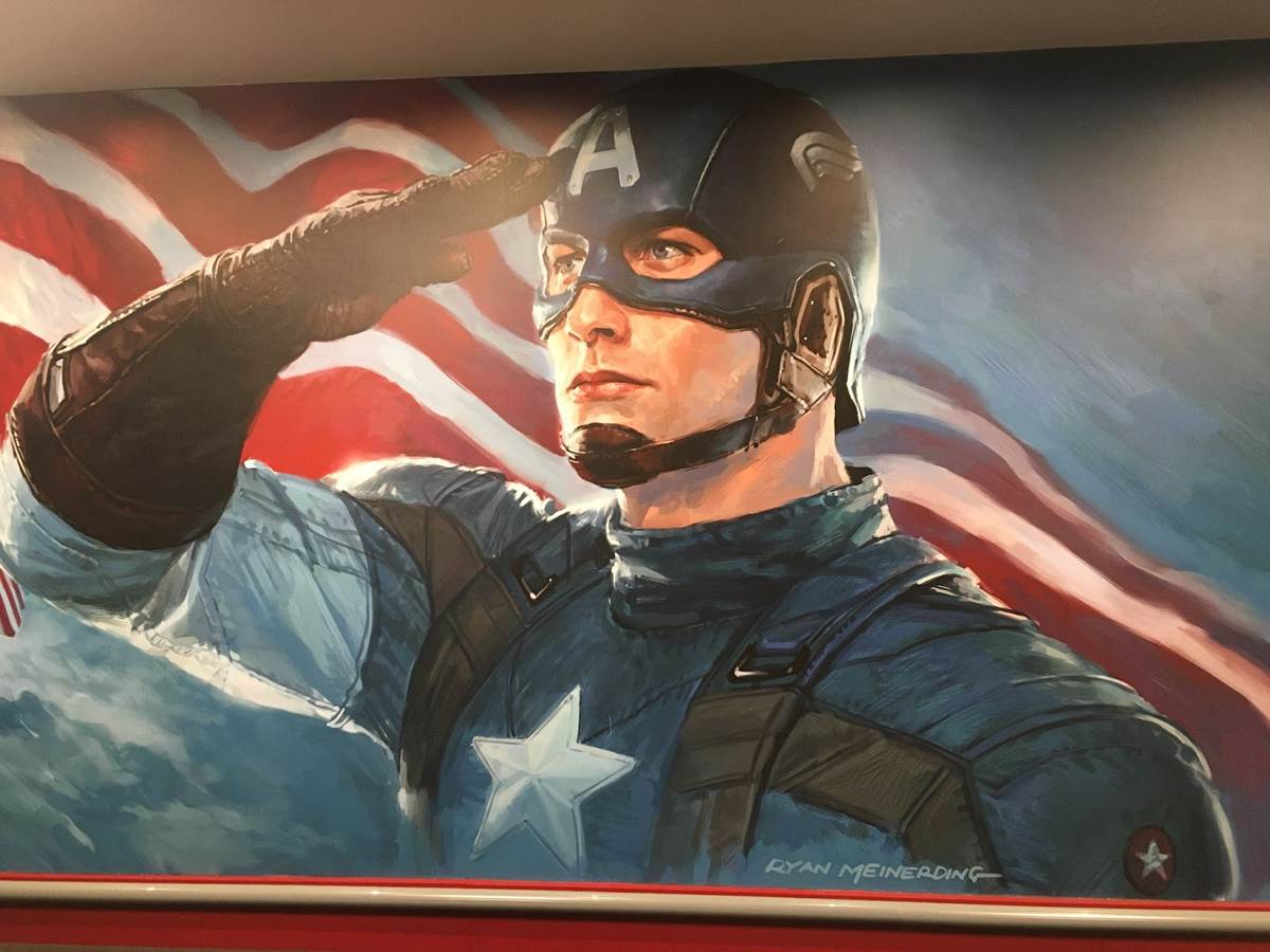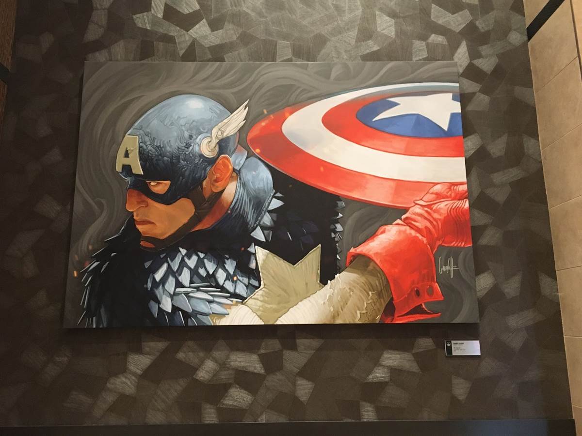 Just down the hall we can find another hyper realistic painting of Captain America by Singapore artist Gary Choo. Titled “The Captain”, this limited edition piece was created in 2016 and immediately draws your eyes to the face.