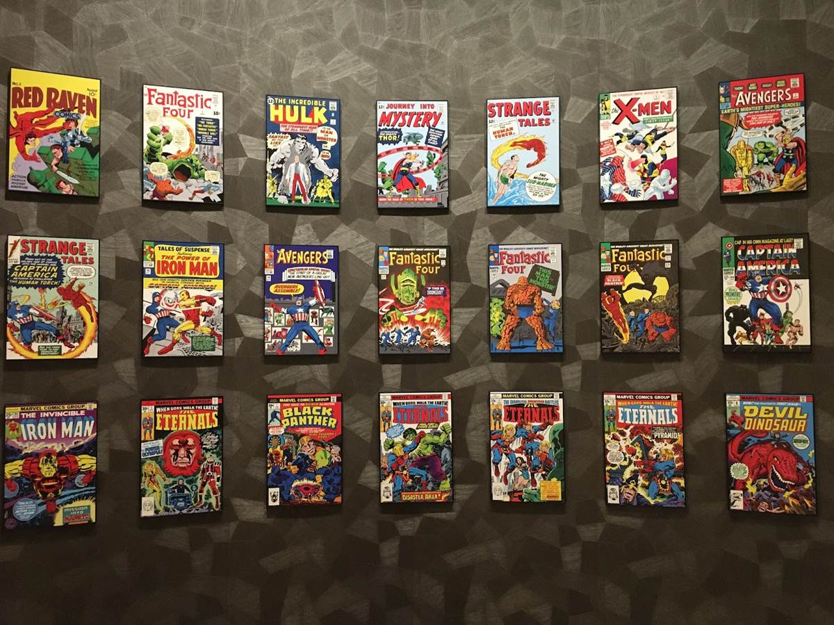 The hotel also features a small gallery celebrating the art of legendary Marvel artist Jack Kirby. This gallery displays various Jack Kirby comic book covers to showcase the first appearances of many of our favourite Marvel heroes.