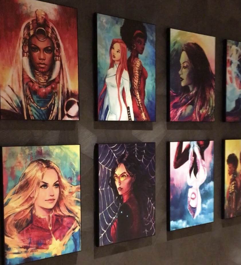 To the right of the Jack Kirby Gallery we can find another set of portraits named “Powers Of A Girl” by artist Alice X. Zheng. These portraits beautifully showcase some of the most powerful women in Marvel.