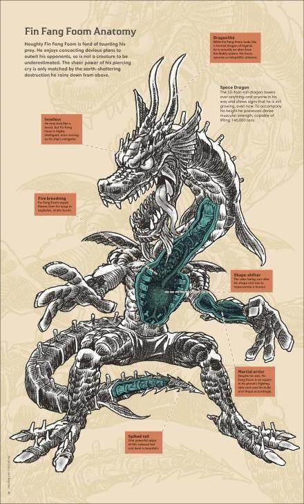 Additionally, some characters get an extra page breaking down their unique anatomy. Whether it’s the rentals of Monstro or the spiked tail of Fin Fang Foom, this book really provides information on every last detail of these bizarre characters.