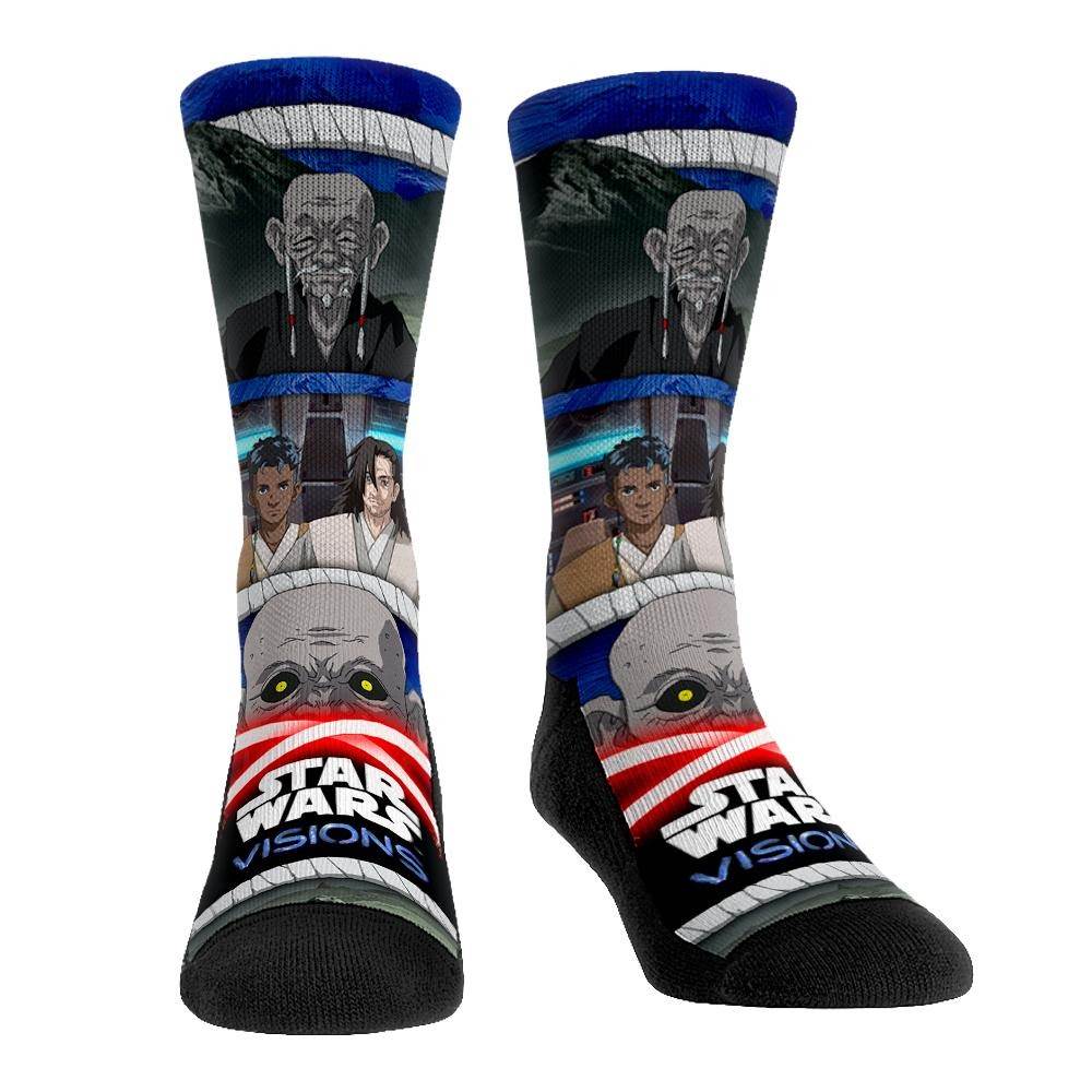 StarWars.com has revealed the first official Star Wars: Visions collections from the anime anthology series coming to Disney+. Among the items are available now and include graphic tees, hoodies and socks from Fifth Sun and Rock ‘Em Socks. The collections feature a variety of characters from the shorts such as, the rock band from “Tatooine Rhapsody” and Ronin from “The Duel.”