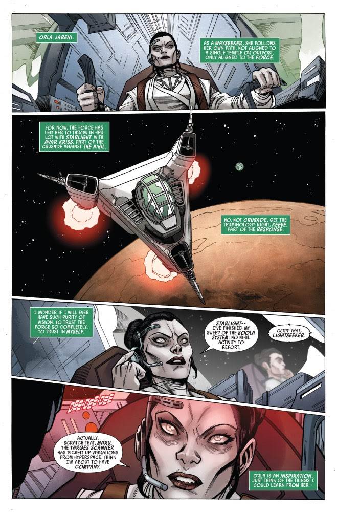 This comic takes place just after the beginning of Tempest Runner, with Dee presumed dead by the Jedi Order as they attempt to take a more active stance in their ongoing battle against the Nihil. But the Jedi stationed at the space station known as Starlight Beacon are put on a holding pattern by Council member Stellan Gios, much to the frustration of Marshal Avar Kriss and her companions in the Outer Rim.