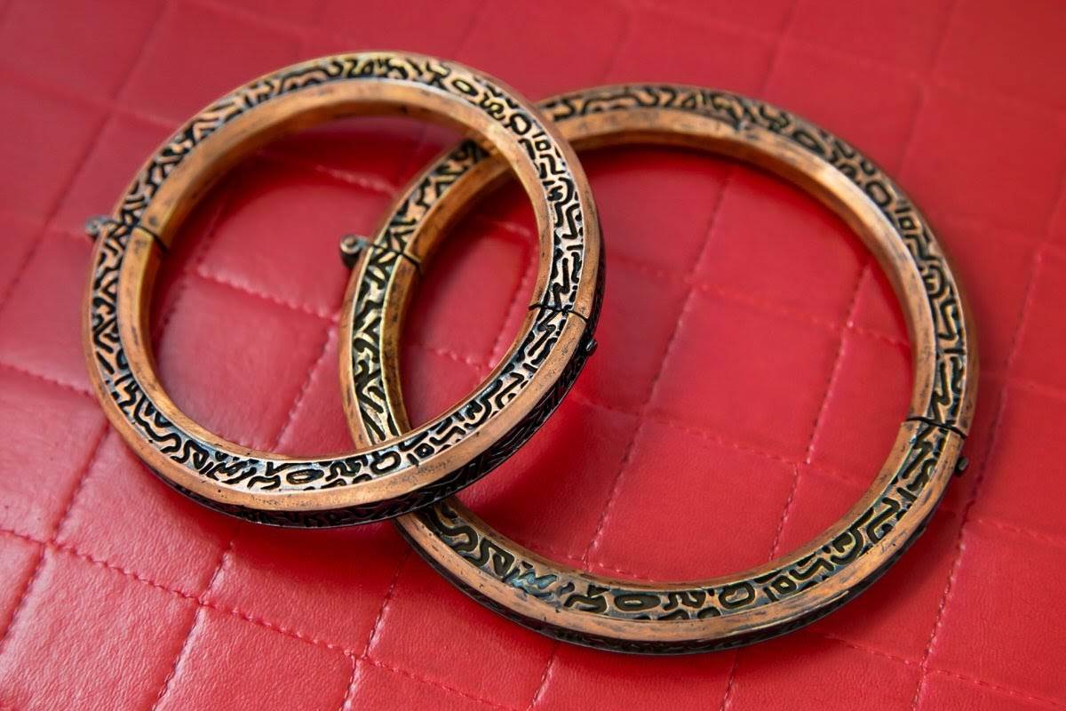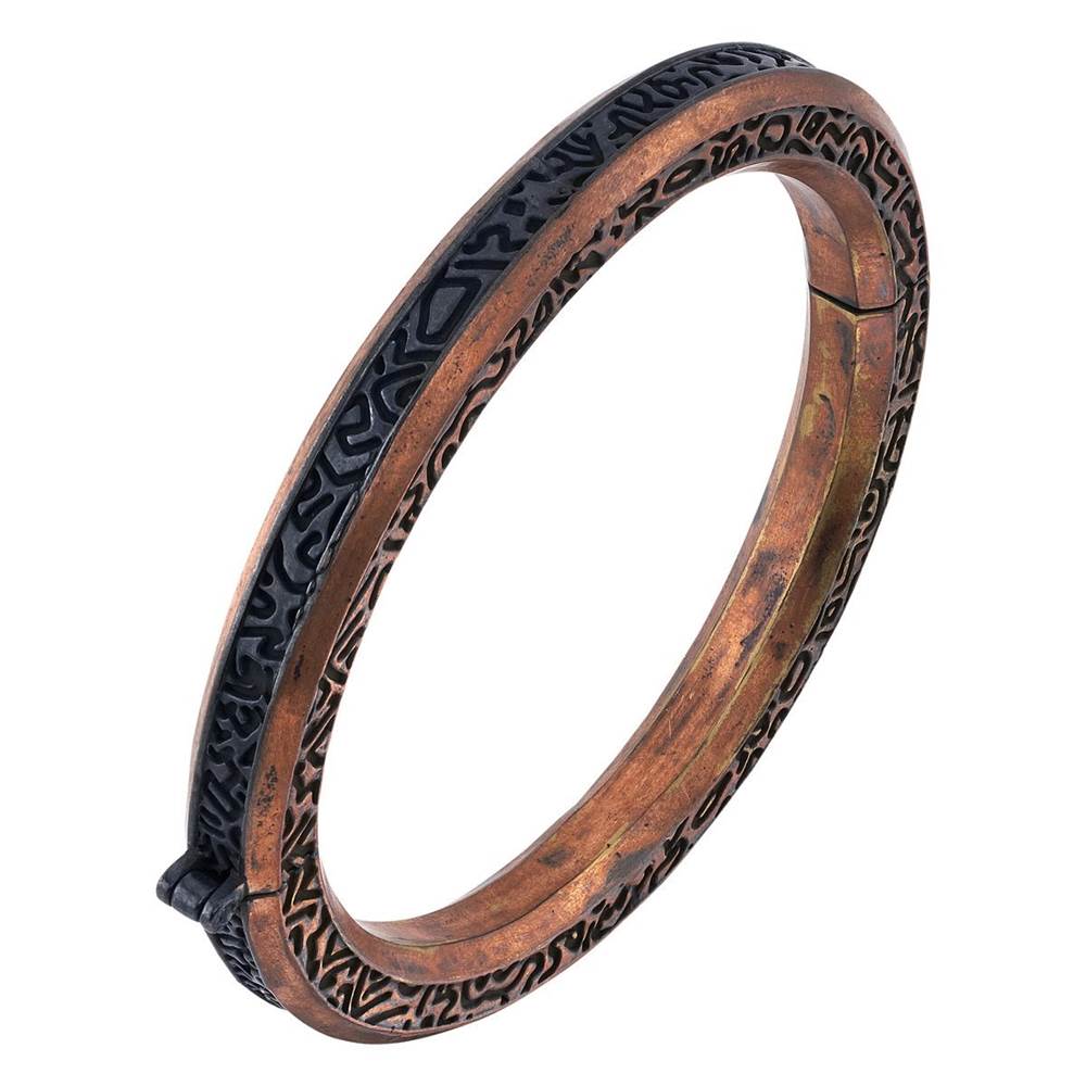 “Handcrafted in hefty durable brass with a distressed copper finish, the Shang-Chi Bracelet is intentionally thinner than the oversized props so that it can be comfortably worn as everyday jewelry.”