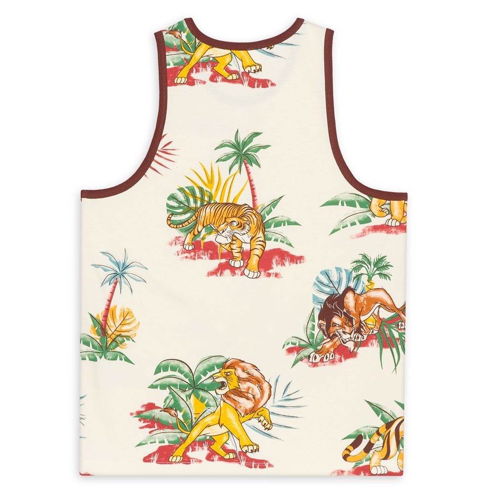 “Prowl the wilds of your own home turf in this fierce tank top featuring favorite Disney lions and tigers. You'll be king of the jungle with big cats Simba, Mufasa, Scar, Shere Khan, and Rajah on your side.”