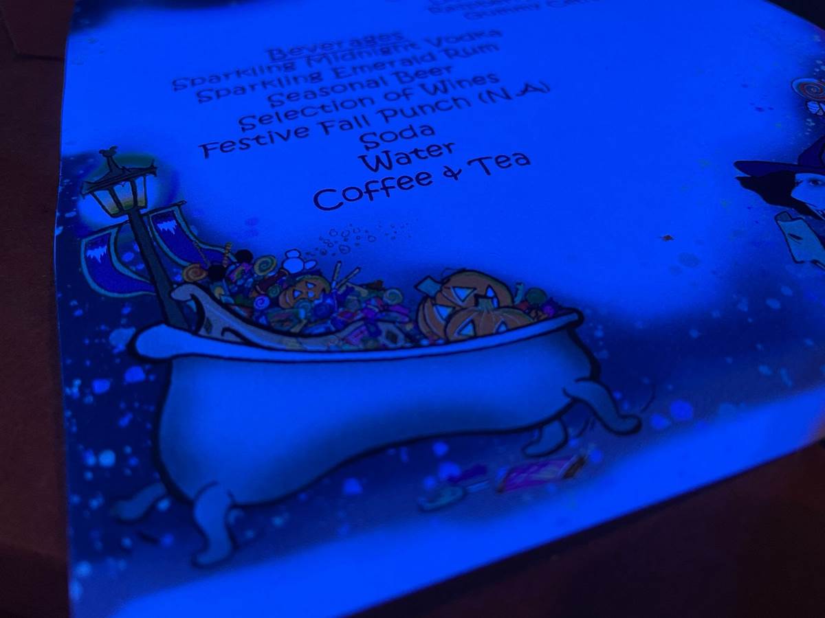 I also spotted a fun menu detail in the bathtub from Lock, Shock, and Barrel. It’s full of candy from their night of trick-or-treating, but they also scored a Mickey Mouse bubble wand!