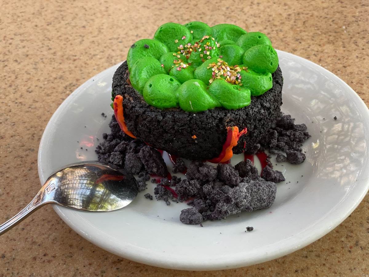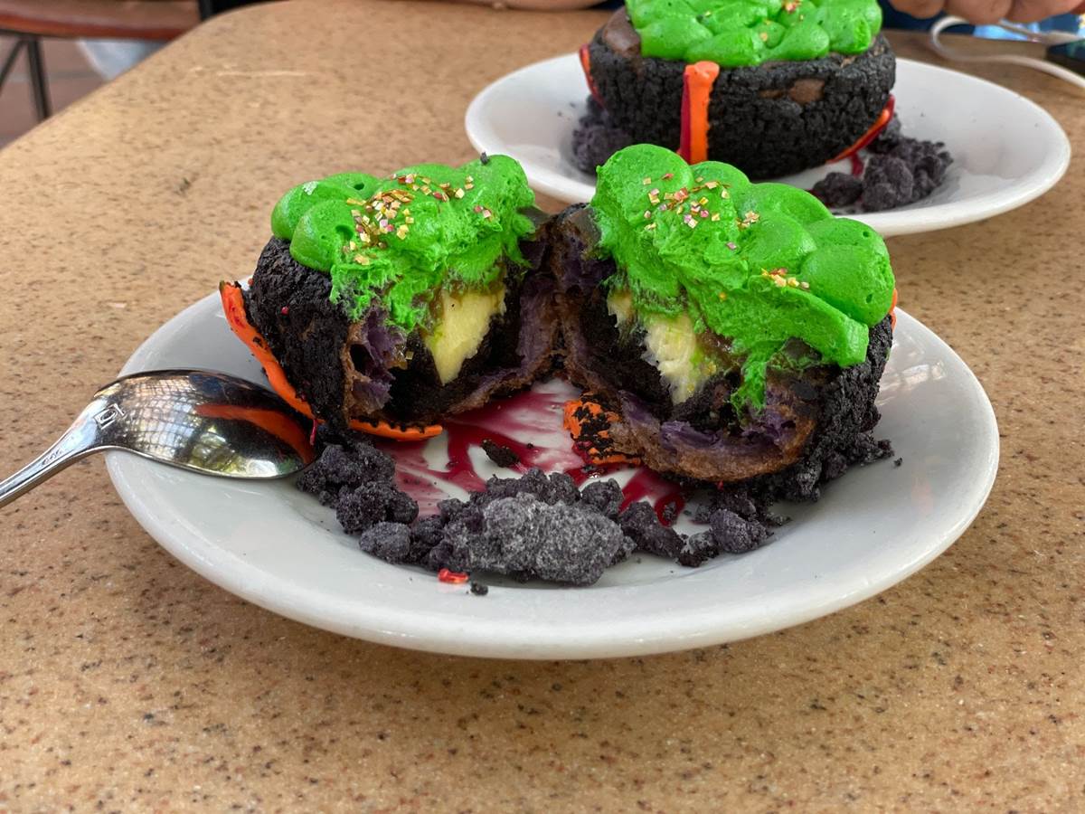 Guests dining on the Oogie Boogie Bash parade viewing package also get an exclusive dessert that isn’t on the regular menu, the Evil Queen Cauldron Cake, themed to the villainess from Snow White and the Seven Dwarfs.