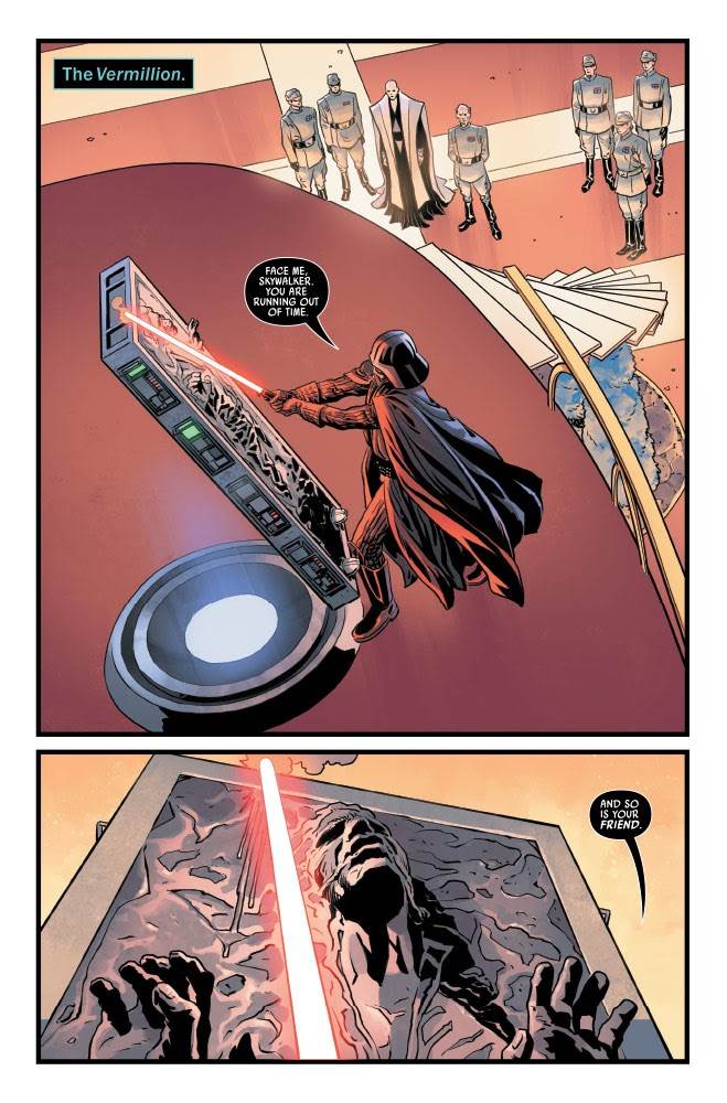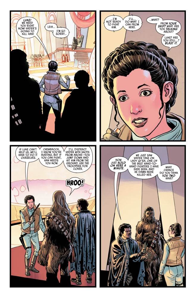 Now, Vader is threatening to cut Solo in half if his son Luke Skywalker doesn’t turn himself over to the Empire, but Luke and Han’s friends Princess Leia, Lando Calrissian, and Chewbacca aren’t going to sit idly by and allow the Dark Lord of the Sith to destroy anyone they love.