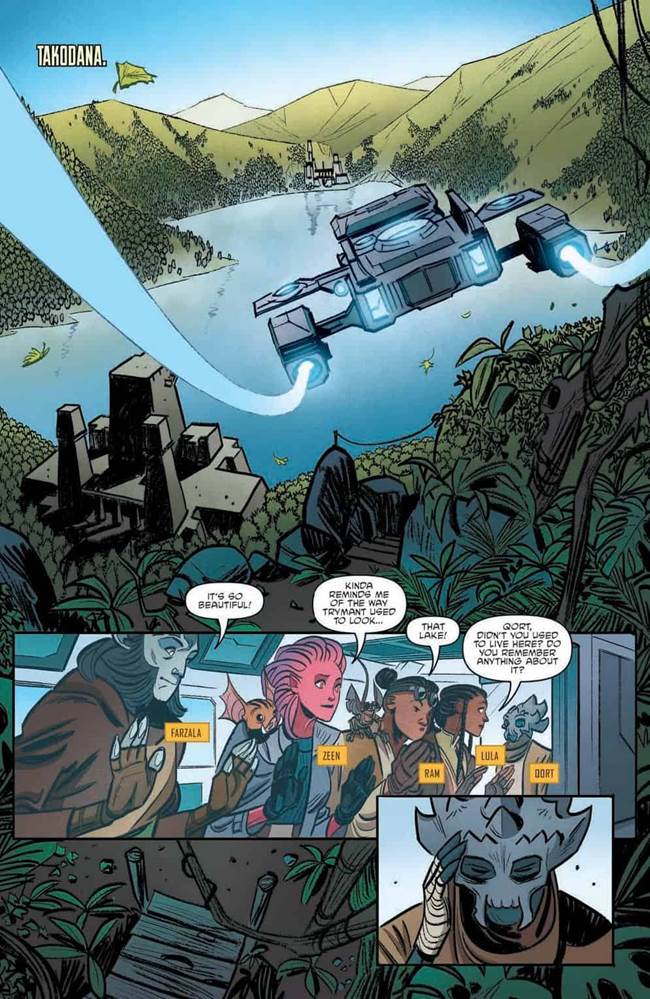 Picking up where we left off in the last issue, IDW’s Star Wars: The High Republic Adventures #9 begins with our Padawan protagonists arriving on the planet Takodana– home of Maz Kanata’s castle, not to mention an ancient Jedi temple.