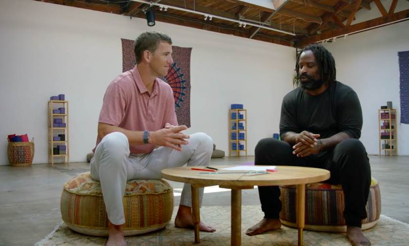Dickerson then drives Eli to a yoga studios in Los Angeles to meet with Rickey Williams, another great college running back.in the biggest laugh of the season so far, Eli replies to Williams’ greeting of “Namaste,” with “Nnamdi Asomugha to you too,” referencing a former NFL cornerback.