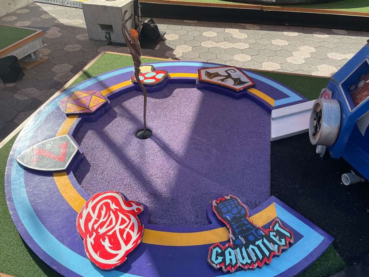 This course themed to a bug’s life is much harder than it looks, with an elevated hole at the top of an anthill. On this course, it’s not only important to line up your shot right, which includes an angled leaf ramp as a starting point, but also requires more oomph in your swing than most since the ball’s final destination is elevated.
