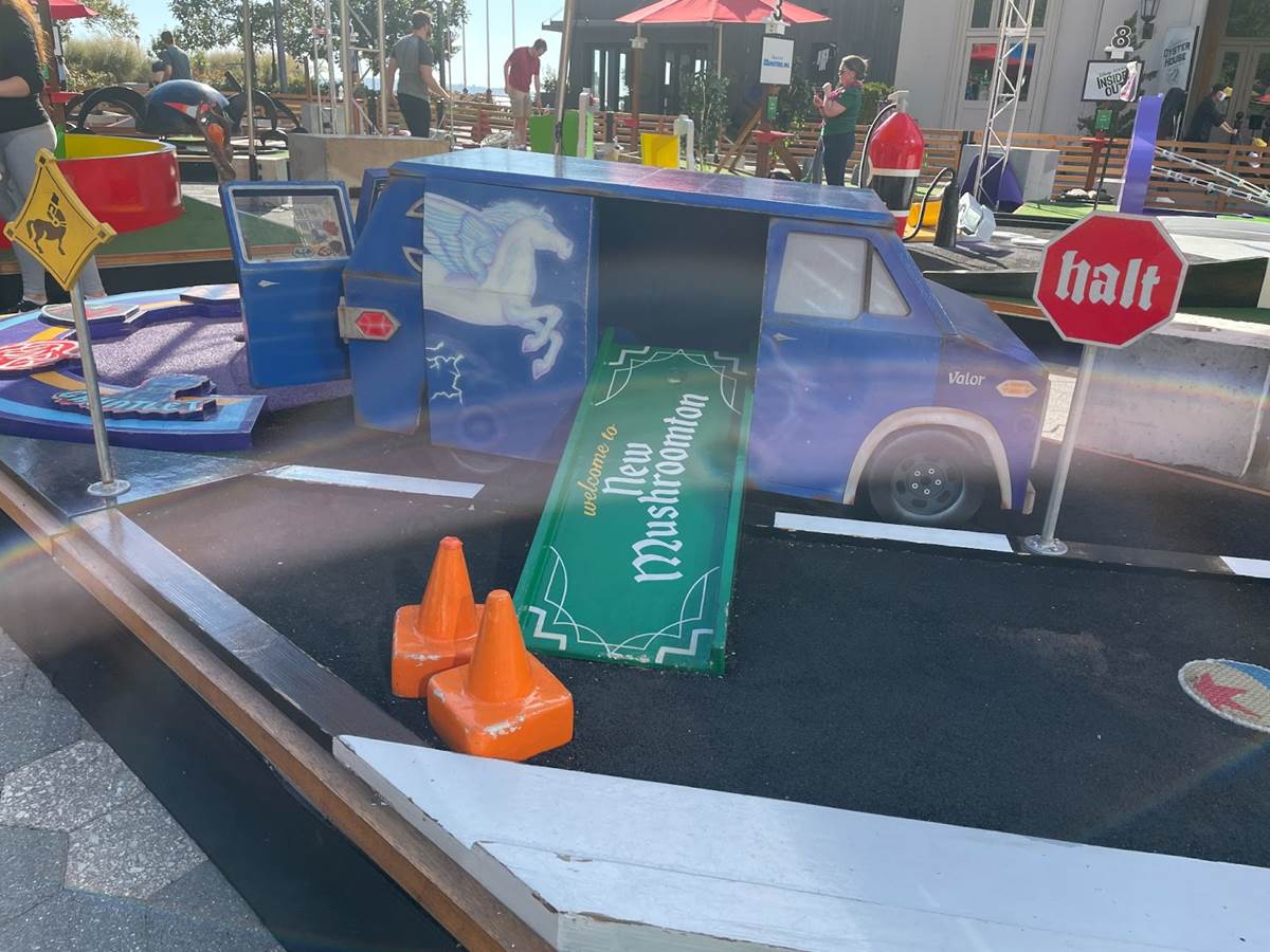 Saving one of the best Pixar films for last. The final course fulfilled Carl Fredrickson’s dream of reaching Paradise Falls. “Adventure is out there” and it starts by sailing your ball into the front door of Carl’s house. Once all players have their balls in the house, an attendant works their magic to sail the home to the top of Paradise Falls, where all balls will release and roll down the waterfall.