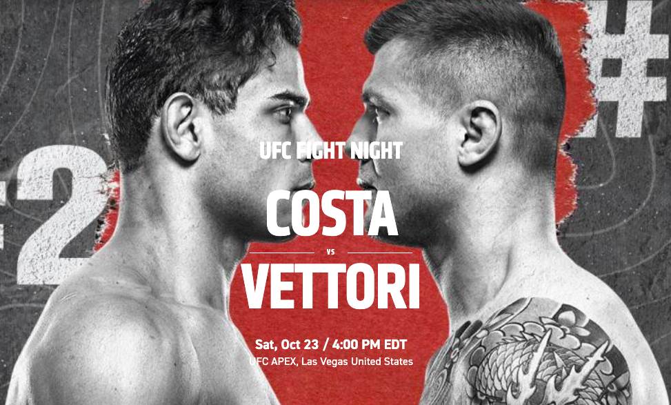 UFC Fight Night: Costa vs Vettori will be held Saturday, October 23 at 4 PM ET. Fight fans can watch live on ESPN+.