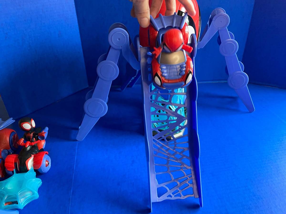 The spider legs on the car fold underneath it, but when kids need to call it into action...