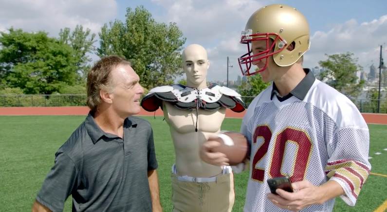 Of course, the conversation doesn’t go long before it steers to the “Hail Flutie,” an iconic game-winning throw from the former Boston College quarterback. Flutie breaks the play down, including the situation and the drive leading up to it. That of course leads to the two of them heading back out to the field to recreate the iconic play, by throwing the long distance at a mannequin. Finally, Flutie steps in and throws the long bomb to Eli in the endzone.