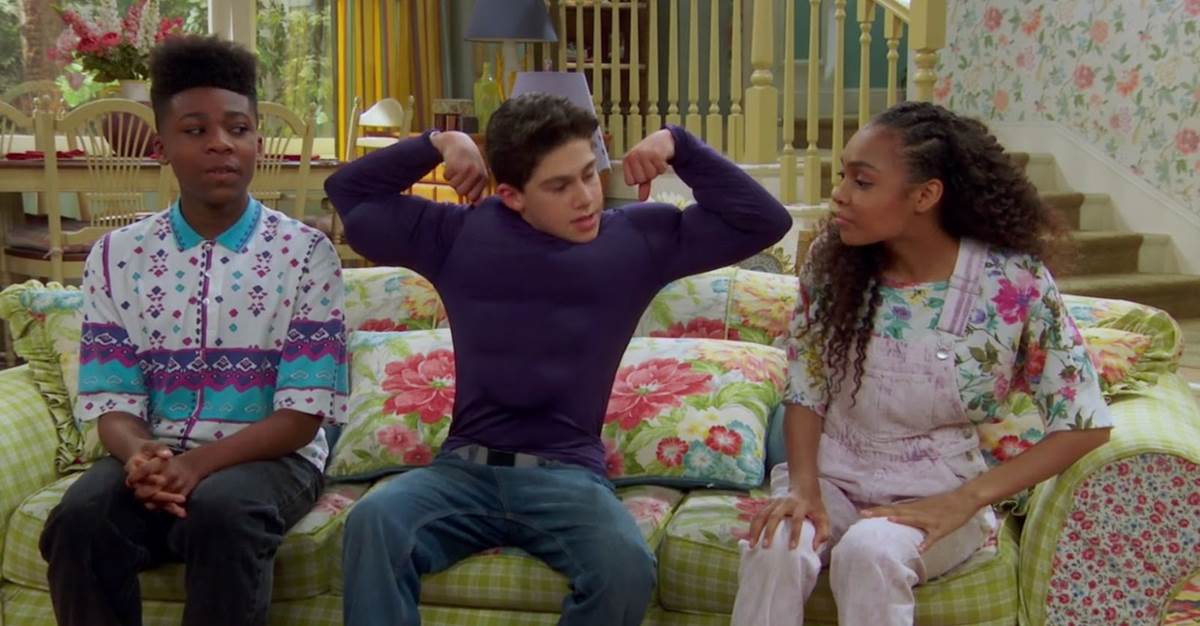 Leo waits in the living room for the Ruckus Rumble to begin on TV and Alisha will be there any minute. Max comes down and has stuffed socks in his shirt to give the illusion of muscles. When Alisha gets there, she tells Max that he looks different and he tries to show off his physique. Leo is uncomfortable and goes to the kitchen. In private, Alisha asks Max why he’s wearing fake muscles and he tells her he wanted to impress her. She tells him she only likes wrestling because it’s fun. “Max, the best part of you is that you always flex your biggest muscle, your heart,” she says. With that behind them, they all enjoy the match.