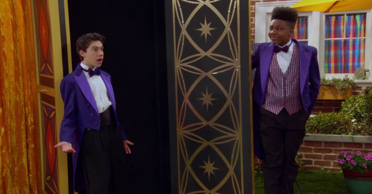 Leo comes over to Max’s house in a flashy purple suit and a cane, which is actually a magic trick that turns into red scarves. Leo’s uncle gave away all of his magic stuff and Max has an idea for a new business, becoming a birthday party magician duo. Leo doesn’t think Max is responsible enough to commit to it, but agrees to host a free show in the backyard this weekend. Their magician names are Abra and Cadabra and they perform a dress rehearsal for Judy, who is amazed by their tricks. But when Leo leaves, Judy gets a phone call and Max has a tryout for the skating tournament the same morning as the show. He believes he will be back in time and says if not, he will leave the tryout early.