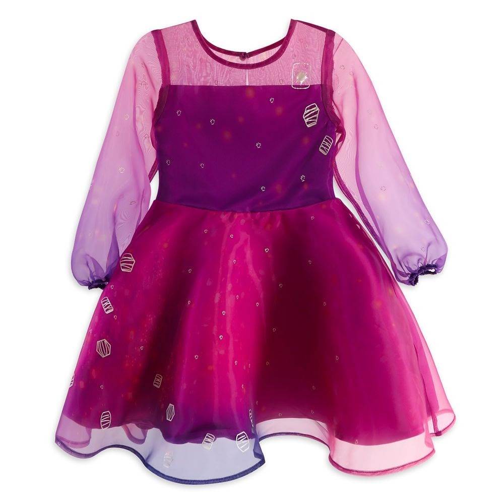 Tangled’s shimmering lanterns and suns rise across the long-sleeved purple organza. Available in sizes ranging from 3 - 10.