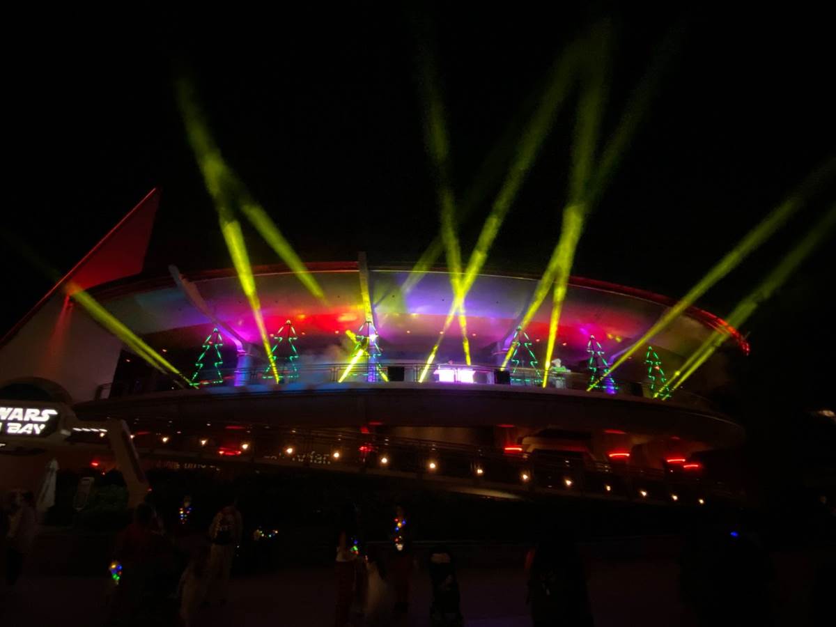 In Tomorrowland, DJ Kara Ford boogied down with Buzz Lightyear on the Star Wars Launch Bay balcony.