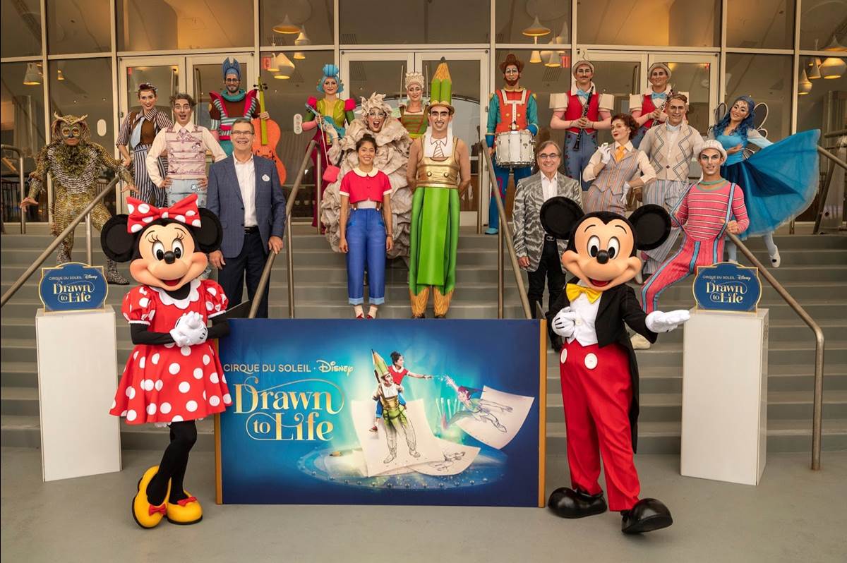 Drawn To Life was first talked about in 2017 when it was announced that the long running La Nouba would be ending its run and that a collaboration between Disney and Cirque du Soleil would be taking over the space in Disney Springs. Now we fast forward almost four years and a global pandemic as Drawn To Life has had its first public performance. We were lucky enough to be invited and, to sum up the show in one word, “WOW!” While the outside of the theater hasn’t changed, the inside has gone through a full upgrade, including a new stage set that grabs you as something special as soon as you walk in.