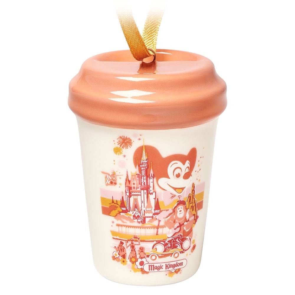 Give your tree or mantle a burst of Disney flair with these ceramic ornaments that resemble a Starbucks to go cup. Each measures 2 1/2'' High with a diameter of 1 1/2''. The Disney World selections come in peachy pink, bright blue, golden yellow, and lime green colors and feature Mickey Mouse, Figment, the Hollywood Tower Hotel, Rafiki and more.