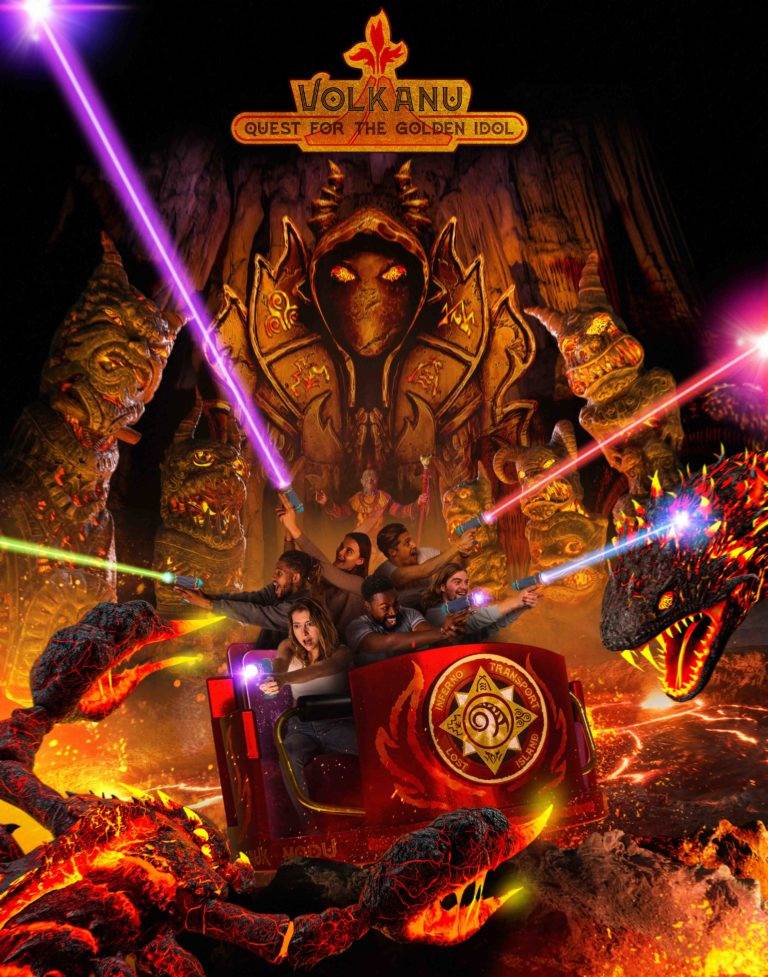 According to Coaster101, “the experience will take riders on a thrill-packed adventure to locate the sacred Ora-Tika statue, responsible for keeping Volkanu dormant, and return it to the altar to restore peace to the island. Guests will be equipped with a powerful Thermal Blaster as they battle with the minions of Volkanu and head to the Temple of Fire to return the statue to its altar.” For more information, check out this video below from Coaster Studios: