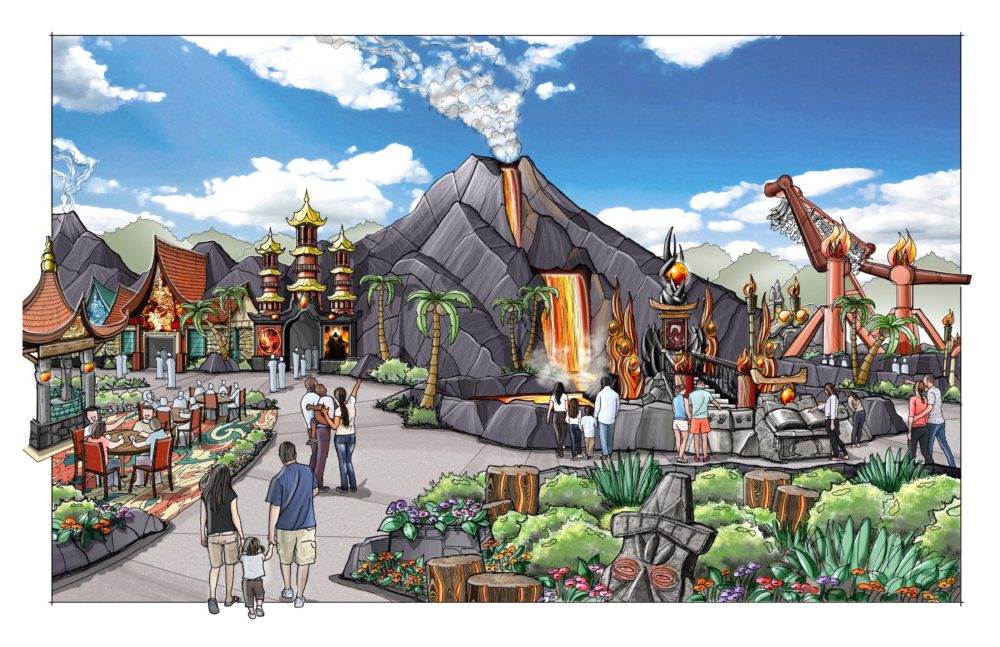 One of the most exciting attractions coming to the park was announced at last week’s IAAPA Expo in Orlando, and it’s called Volkanu: Quest for the Golden Idol. This will be a trackless dark ride designed by Sally Dark Rides, intertwining perfectly with the park's mythical theme. The attraction will be located within a signature volcano in the “Fire” realm of the park. Sally even had animatronic figures from the attraction on display at IAAPA.