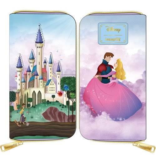 The castle series is back! This time, Loungefly commemorates Sleeping Beauty with three enchanting accessories that showcase Aurora’s royal home. The wallet features the happy ending of the story with the castle on one side and Aurora dancing with Prince Phillip on the other.