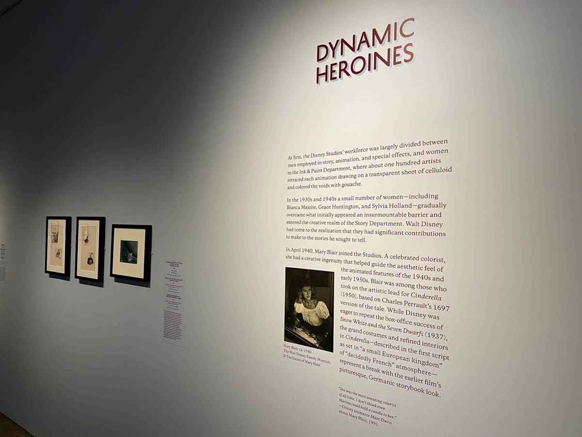 One of the biggest surprises for me in the exhibit was the Dynamic Heroines gallery. Talking about Bianca Majolie, Grace Huntington, and Sylvia Holland who in the 1930’s and 40’s gradually overcame what initially appeared an insurmountable barrier and entered the creative realm of the Story Department. But when it comes to names that really broke down the walls at the Disney Studios, Mary Blair is of course at the forefront of the charge. As the artistic lead on Cinderella she took the short description of “a small European kingdom” in the first script and defined the way a “Disney Kingdom” was seen for generations.