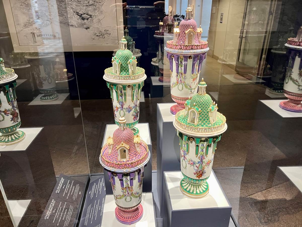 The exhibit concludes with a look at the “Architecture of Imagination” and “The Pursuit of Happiness” and how something as simple as an elegant pair of tower vases could go on to inspire the Castles in the Disney Parks from around the world.