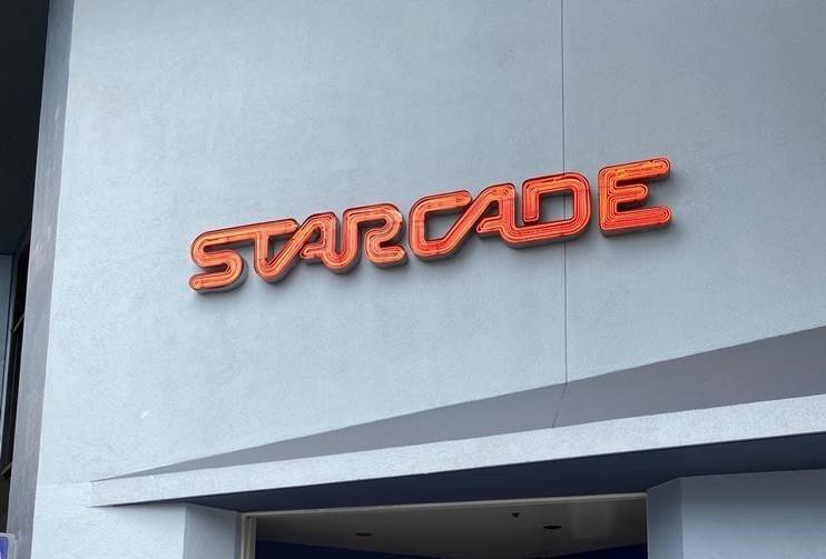 Neon doesn’t appear on Main Street USA due to the area being set at the turn of the last century, and neon didn’t start to readily appear until the 1920s. The first neon sign inside Disneyland was the Starcade marque, which was installed in 1977. Neon was still seen as a reminder of seedy motels and casinos at the time, so it took a retro resurgence 10 years later to bring neon back in vogue.