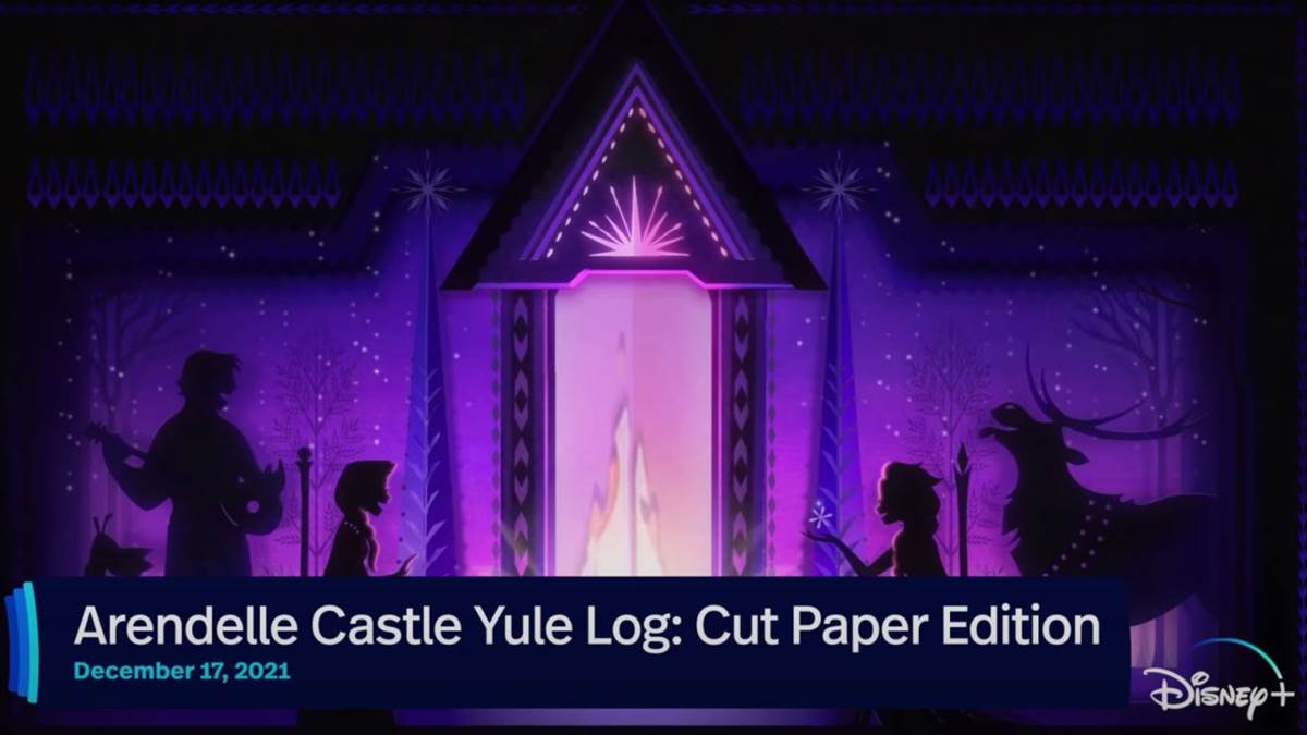 “Hand-crafted from paper art by Brittney Lee, Walt Disney Animation Studios’ acclaimed visual development artist on Frozen and Frozen 2, this warm and inviting hearthside scene sets a festive holiday mood. Stylized cut-out paper flames combine with imaginative visual effects (including a touch of snow provided by Elsa) and silhouetted images of Anna, Elsa, Olaf, Kristoff and Sven to add to your holiday fun and enjoyment.”