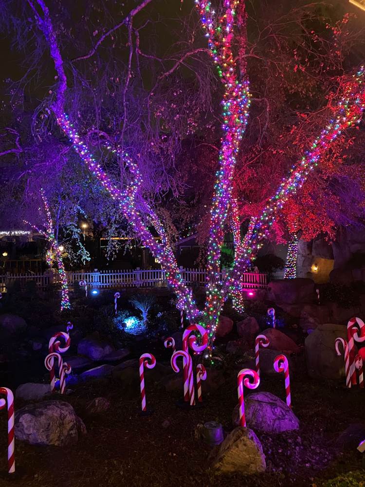 One of my favorite sets of decorations in the park are these oversized Christmas lights on Coasters Drive-In.