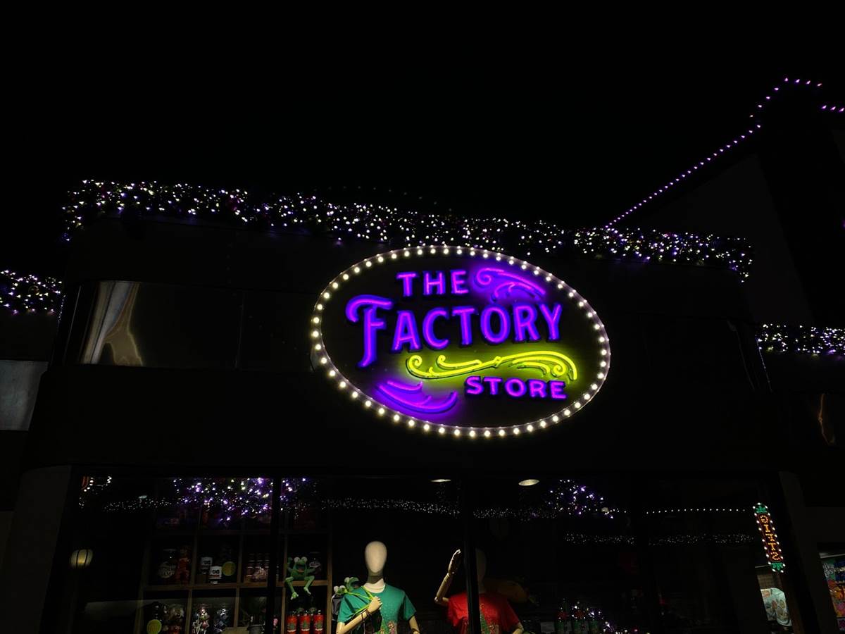 The Factory Store at the exit of Knott’s Beary Tales recently got a great new sign that matches beautifully with the Christmas decorations in the area.