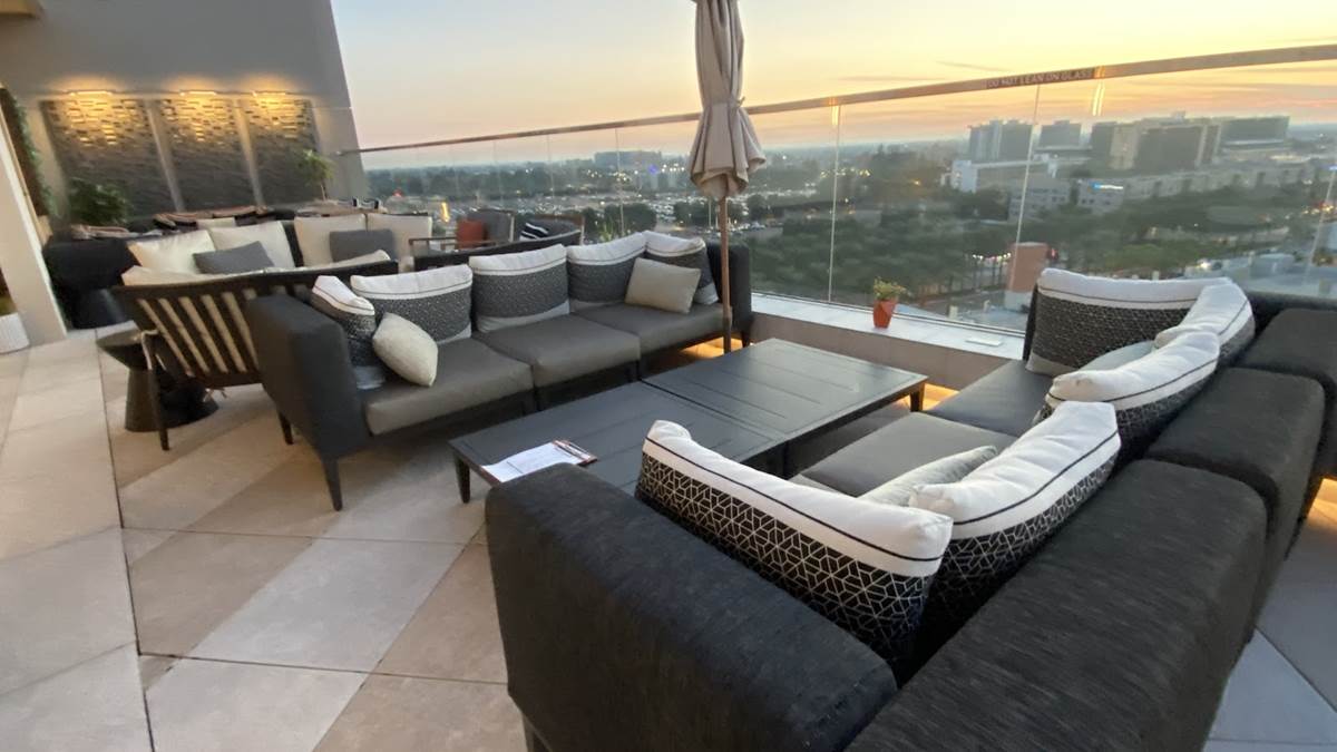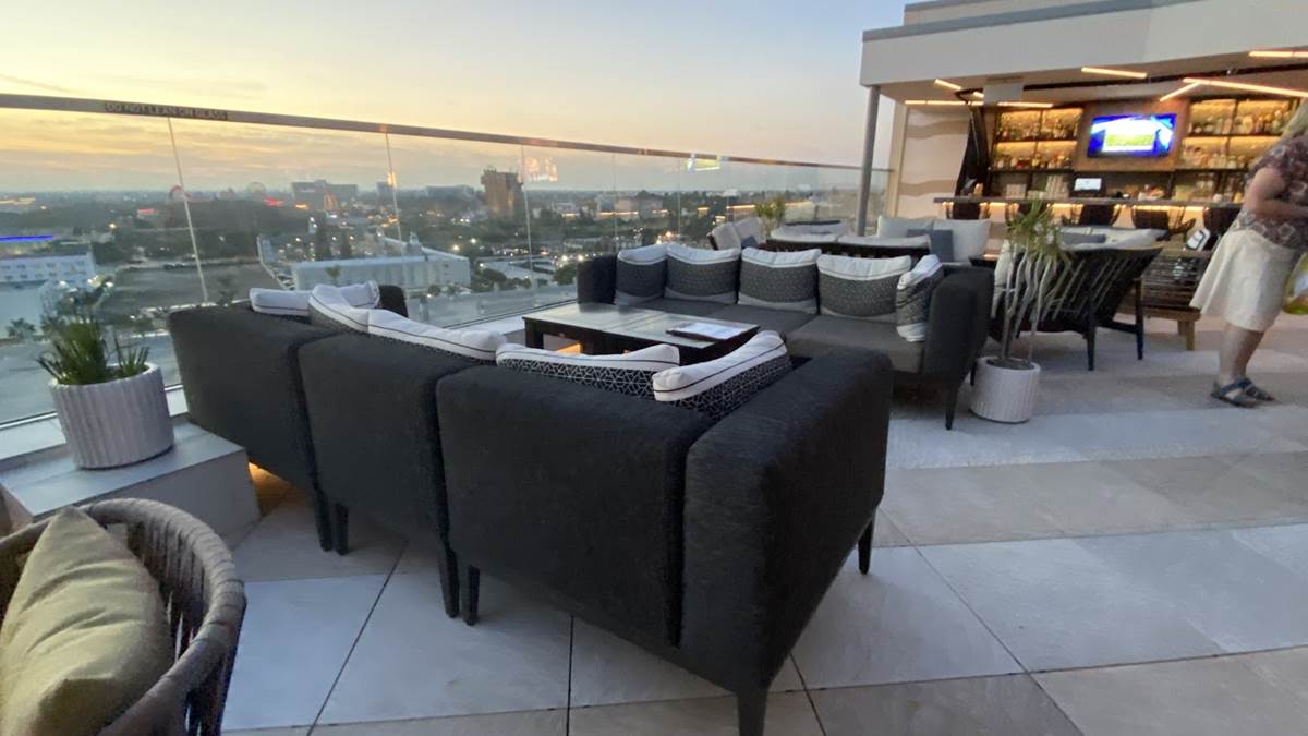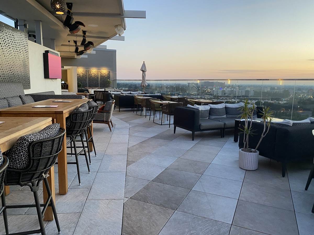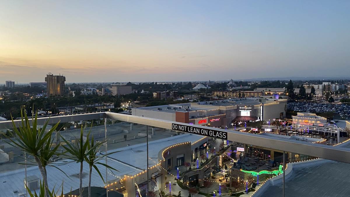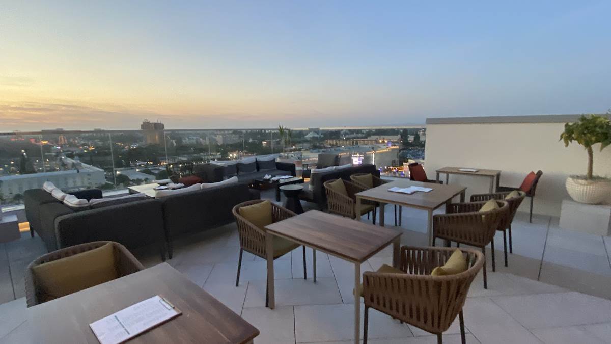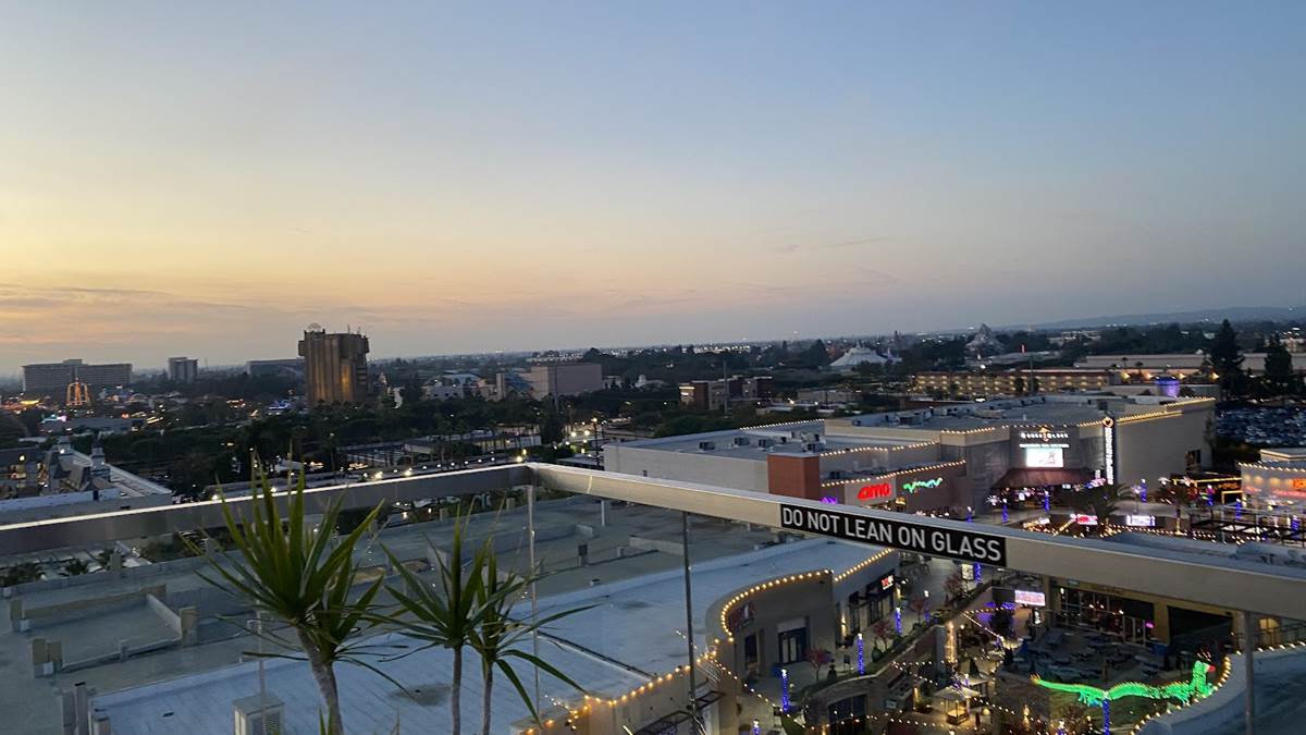 But we’re here to enjoy the rooftop highlight of the resort - the Parkestry Rooftop Bar and Lounge. As of right now, it’s the most elevated bar and lounge area in the city, with views of neighboring Disneyland Resort, the legendary sunsets of Southern California, and on clear days, Downtown Los Angeles and even Catalina Island. We were even told that the legend of the day they saw the famous Hollywood sign from this location, but I call that a legend because I can’t see it when I’m right beneath it. Best of all, this space is open to all, not just those staying at the hotel. Disney fans will love the location as a cursory glance will offer views of Pixar Pier (and likely some of World of Color when it returns), Guardians of the Galaxy - Mission: Breakout, Space Mountain, Matterhorn Bobsleds, and Star Wars: Galaxy’s Edge in the distance. More focus will reveal even more locations like Sleeping Beauty Castle, Grizzly Peak, the top of the Moonliner and other taller visual landmarks of the parks.