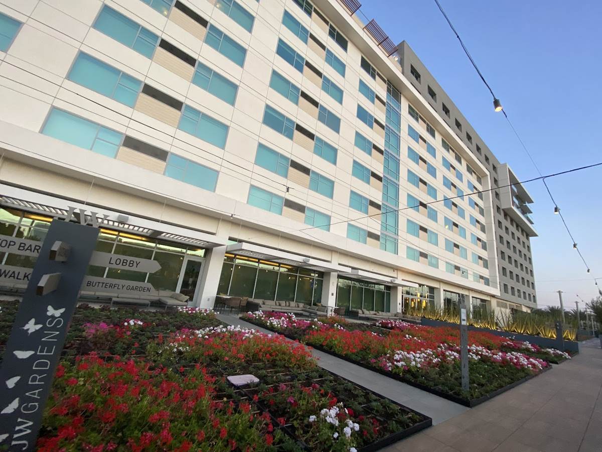 Between GardenWalk and the JW Marriott sits the resort’s JW Garden. This space has actually won the Julie Mayer Award, the highest honor from Anaheim’s 2020 Art in Public Places. Throughout the garden are sculptures and other art pieces, but the JW Garden carries over the agricultural aesthetic and actually plays a significant role in the development of the hotel’s food and beverage programs by providing fruits, herbs, and vegetables such as kale, basil, strawberries, and jalapenos.