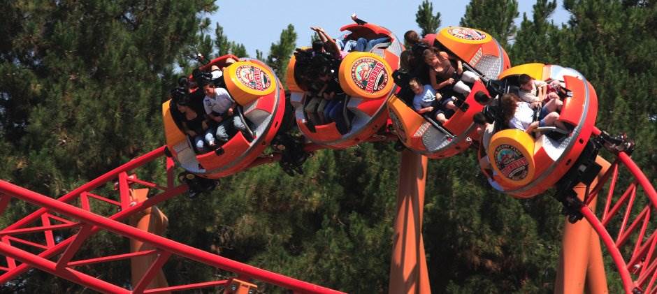 Sierra Sidewinder is a completely deceptive roller coaster. Located in the park’s Camp Snoopy area, you would think this is a small, kid-friendly attraction. And while that is mostly true, some might consider Sierra Sidewinder to be one of the more forceful coasters in the park, as the low to the ground helixes combined with the spinning element really pack a deceptive punch.