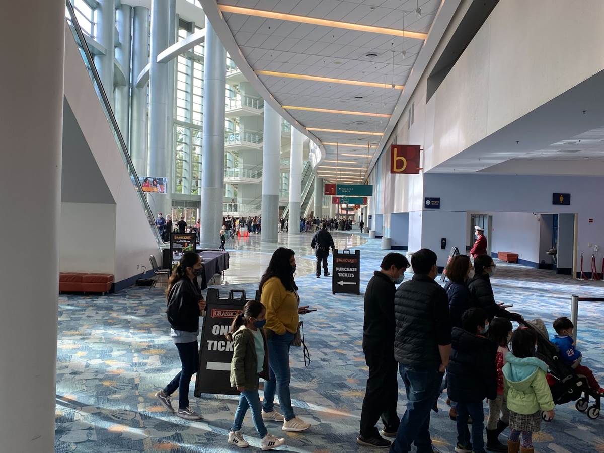 Lots of guests lining up to get into Jurassic Quest at opening time!