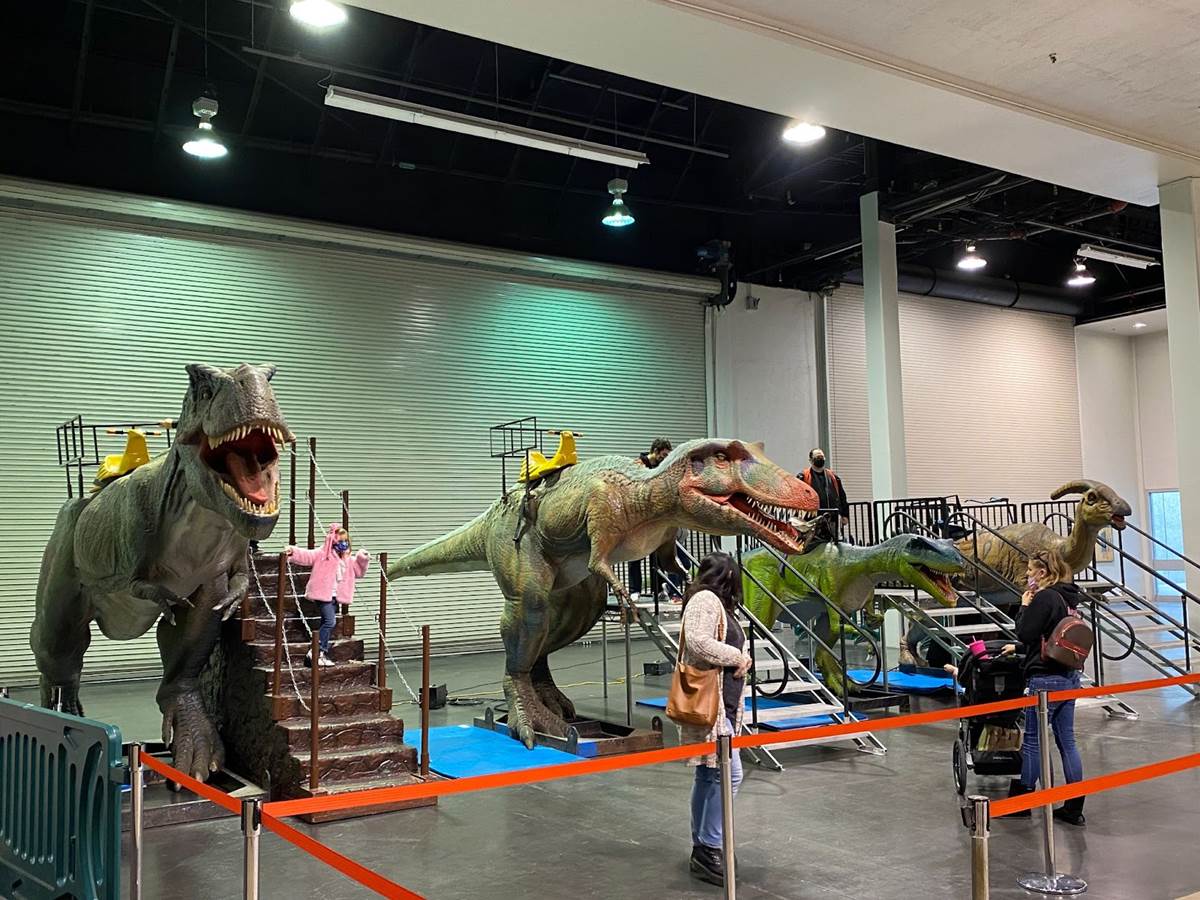 Little ones (and presumably adults too) who paid an extra fee could hop on the back of a moving dinosaur for a mild yet shaky ride.